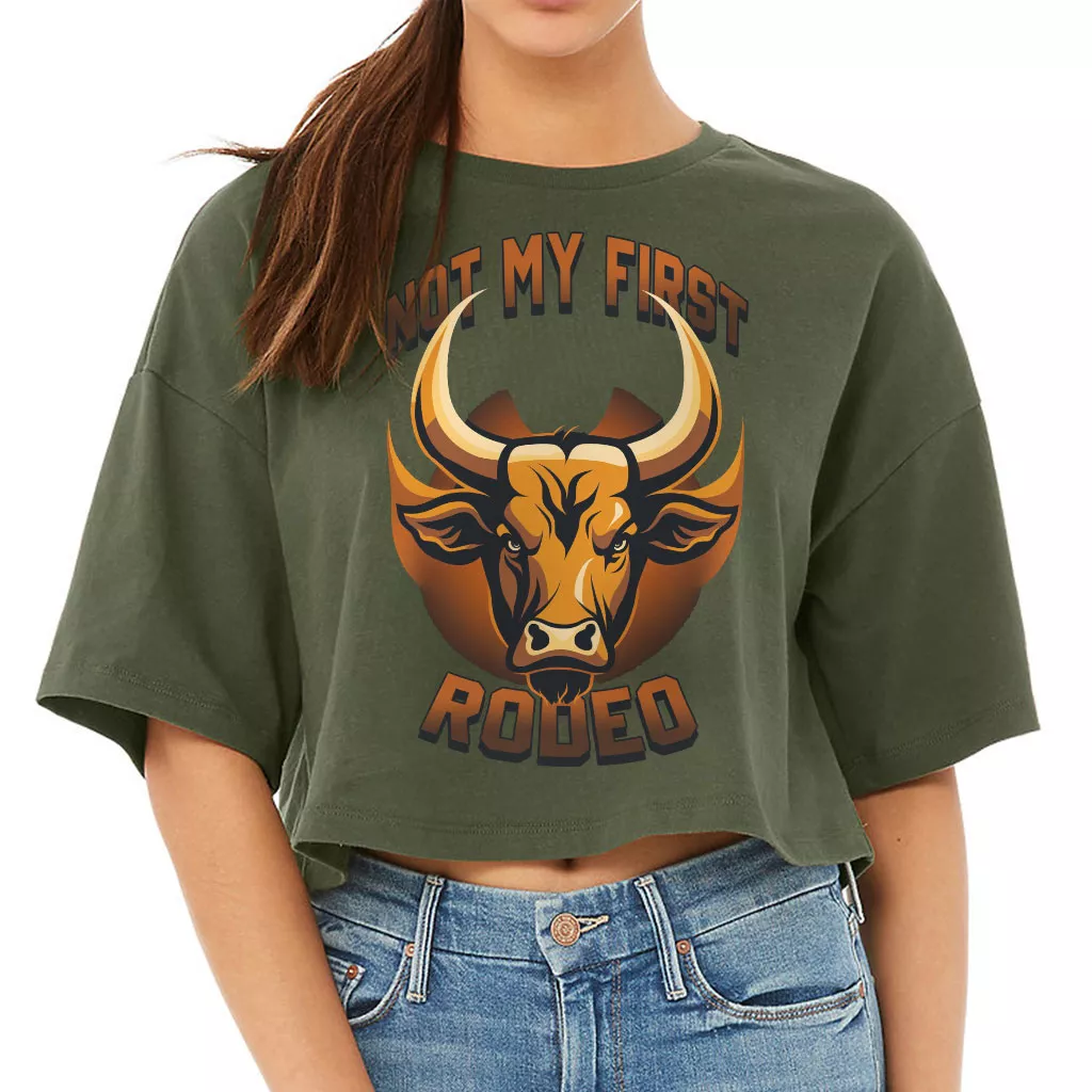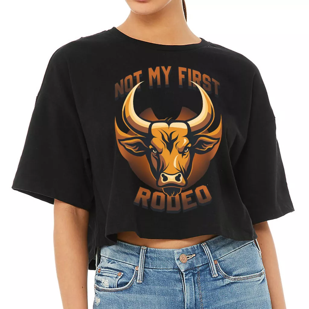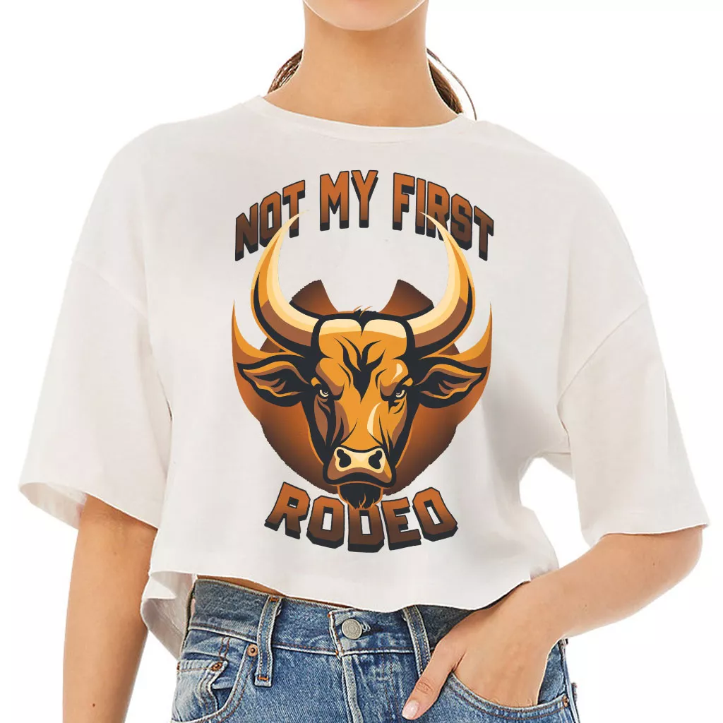 Not My First Rodeo Women’s Crop Tee Shirt – Bull Design Cropped T-Shirt – Cool Graphic Crop Top
