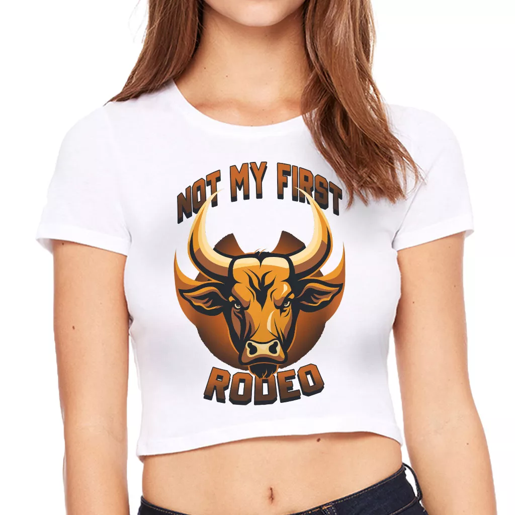 Not My First Rodeo Women’s Cropped T-Shirt – Bull Design Crop Top – Cool Graphic Cropped Tee