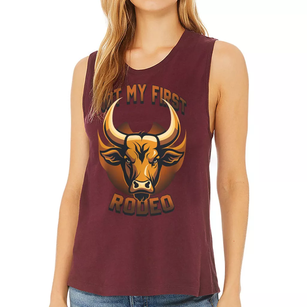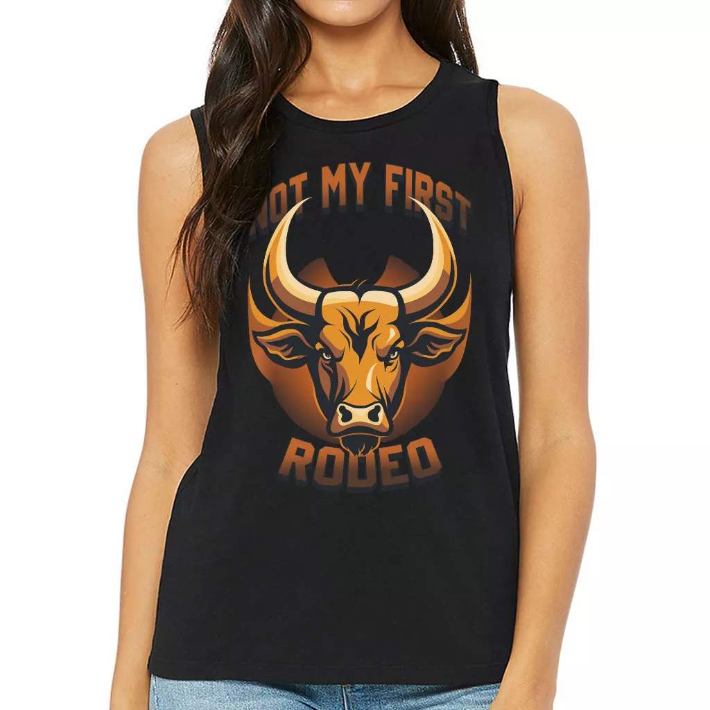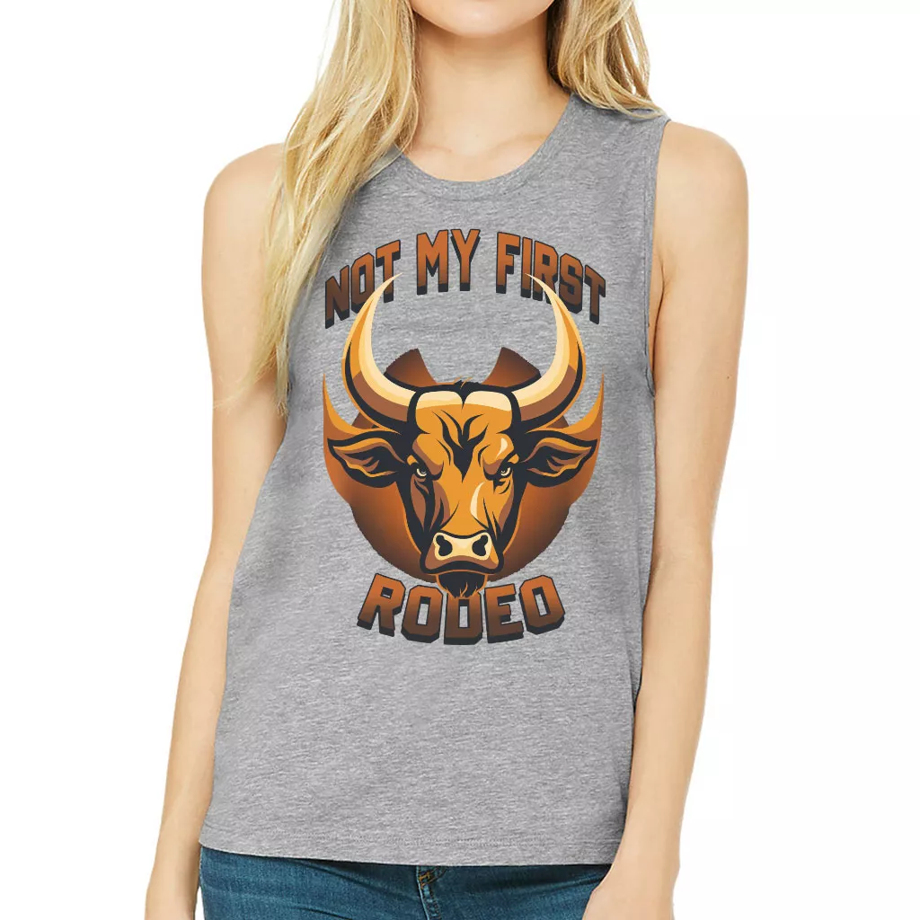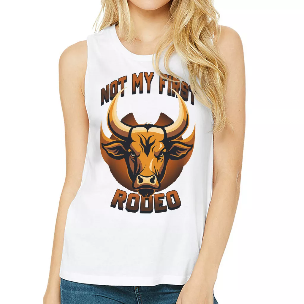Not My First Rodeo Women’s Muscle Tank – Bull Design Tank Top – Cool Graphic Workout Tank