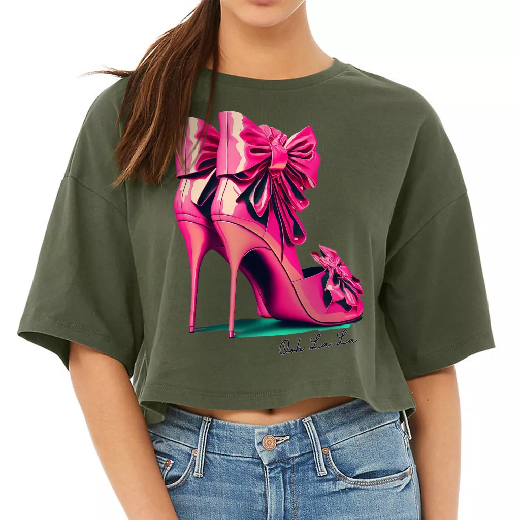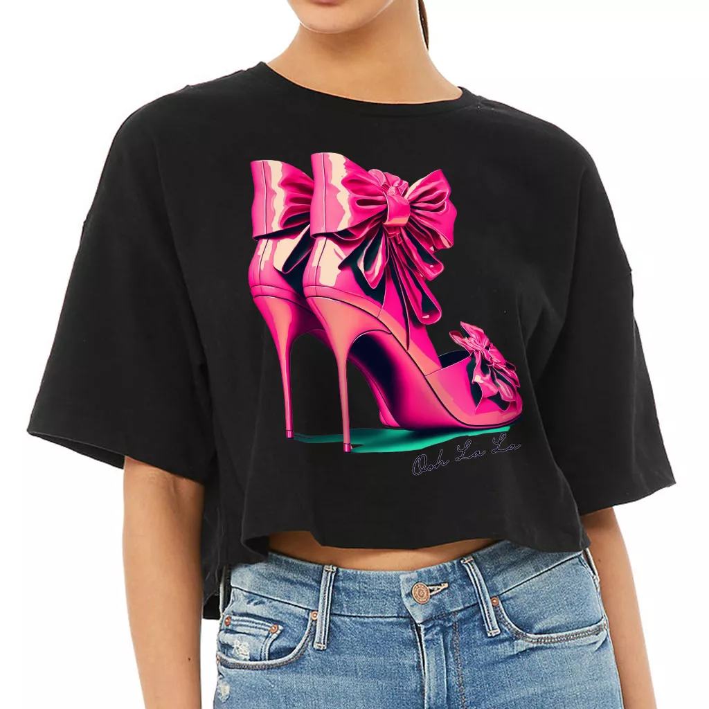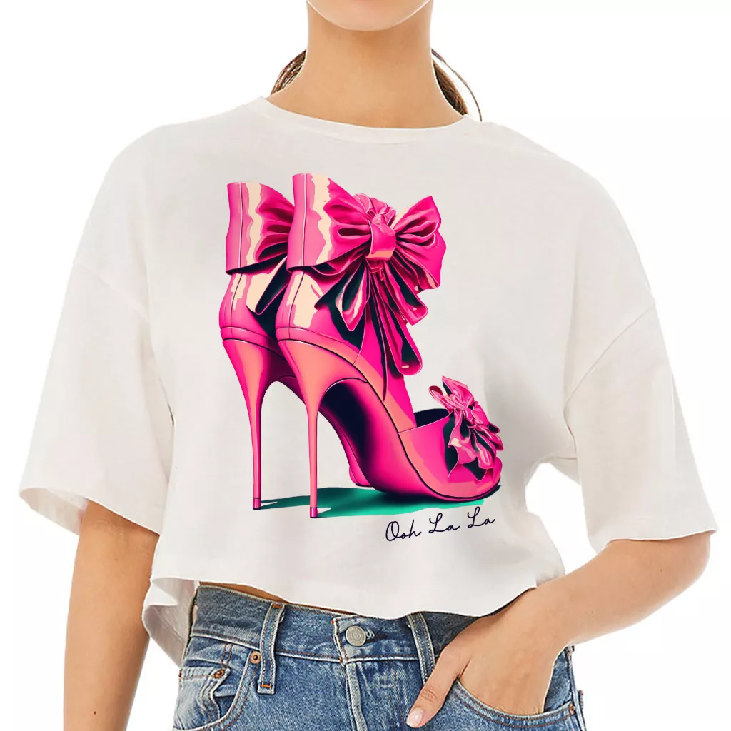 Ooh La La Women’s Crop Tee Shirt – Cute Design Cropped T-Shirt – Illustration Crop Top