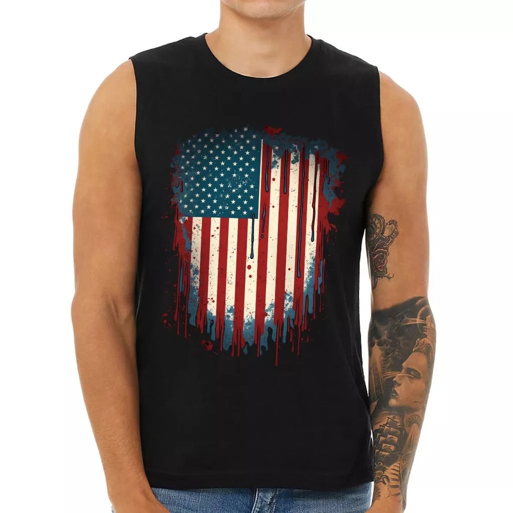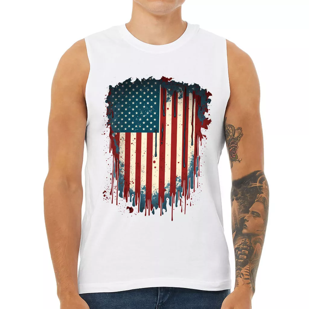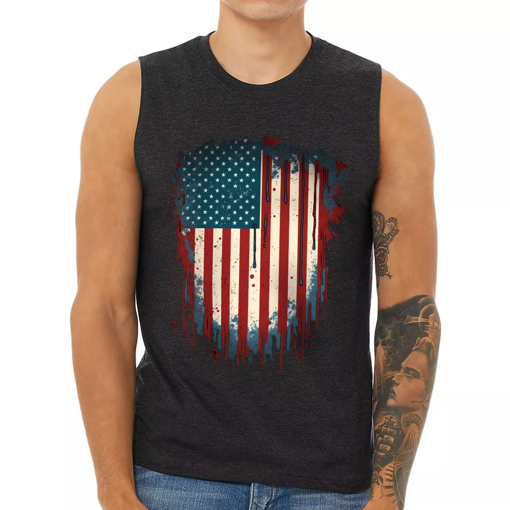 Patriotic Design Men’s Muscle Tank – American Flag Men’s Sleeveless T-Shirt – Trendy Tank