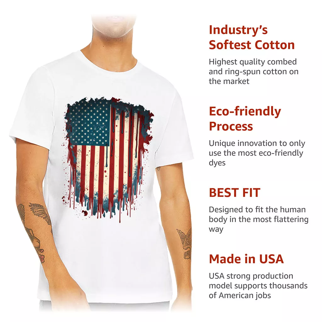The cotton material feels great against your skin and is very light, feels good on the body, and has good air permeability. The material of Patriotic Design Short Sleeve T-Shirt makes you feel soft and comfortable. No fading, no pilling!