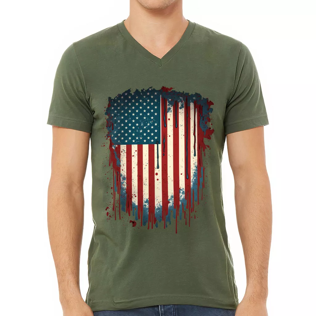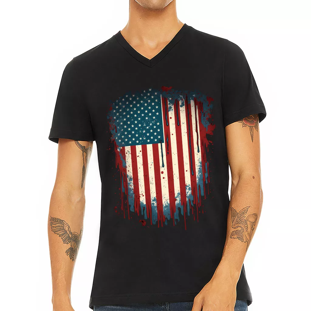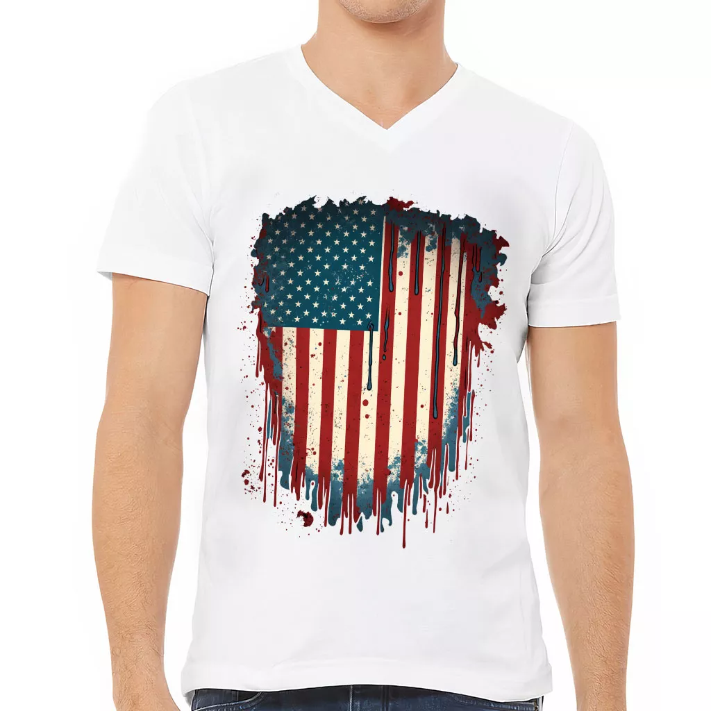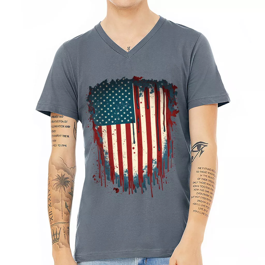 Patriotic Design V-Neck T-Shirt – American Flag T-Shirt – Trendy V-Neck Tee