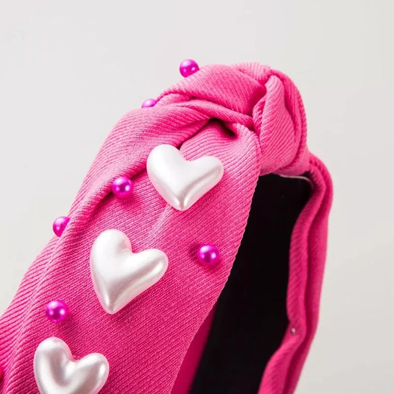 - Chic and Trendy Design: Featuring a knotted design inlaid with love-shaped pearls, this headband exudes a romantic and trendy vibe.