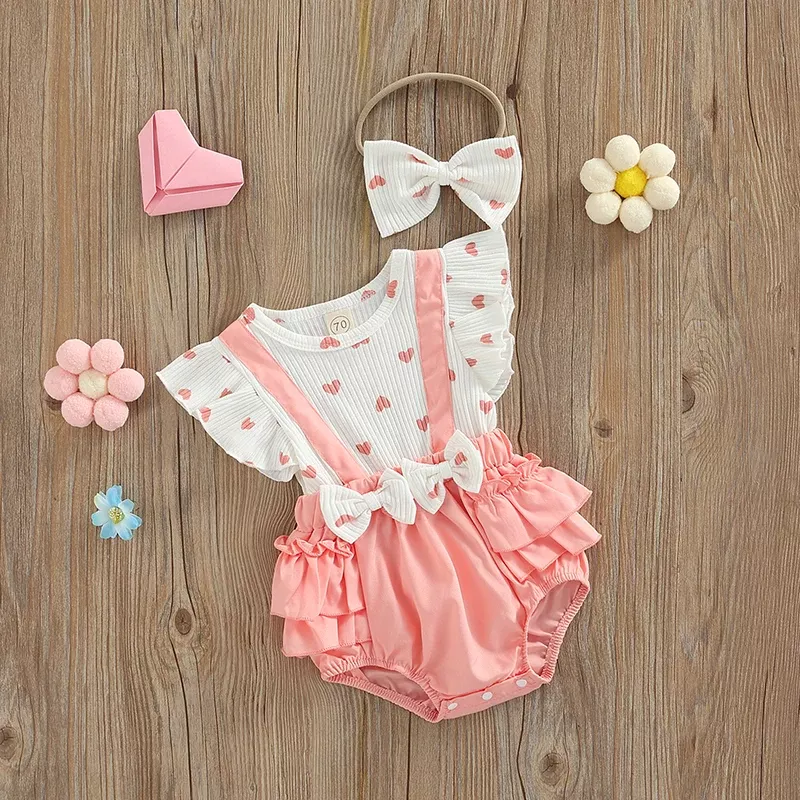 Introducing our adorable Pink Heart Pattern Baby Girl Romper & Bow Knot Headdress Set, designed to keep your baby comfortable while adding a splash of cuteness to their wardrobe. This charming ensemble is perfect for 0-18 months old toddlers, ensuring they look their best from playdates to special occasions. With its delightful pink heart pattern and innovative fake two-piece design, it combines style with practicality for the modern baby.