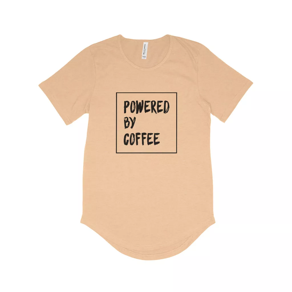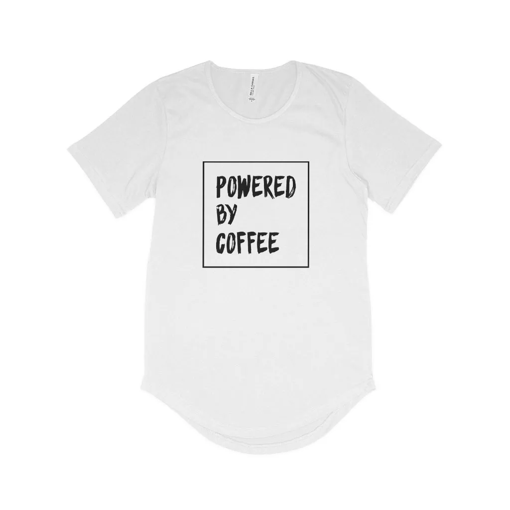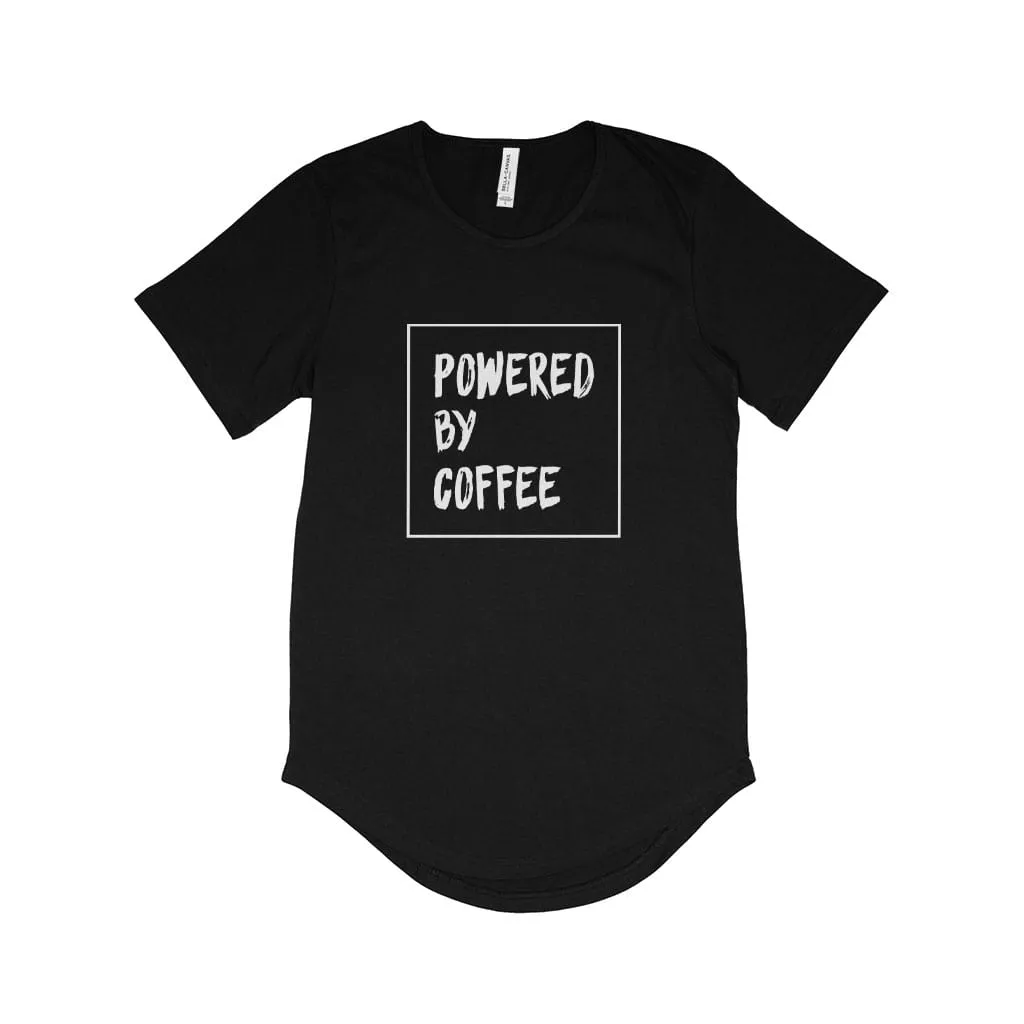 Powered by Coffee Men’s Jersey T-Shirt with Curved Hem