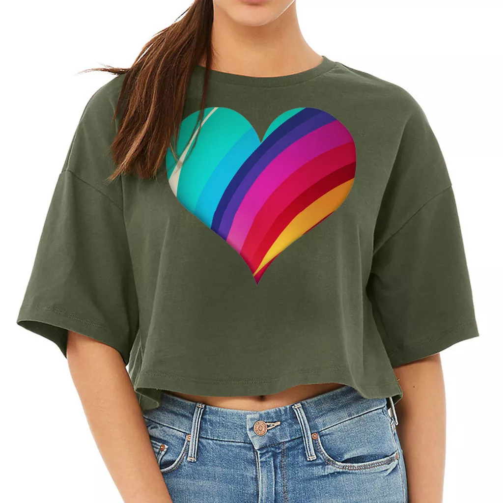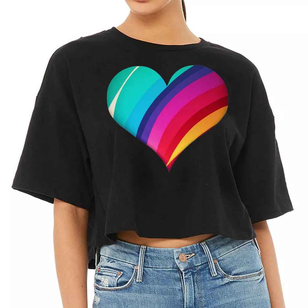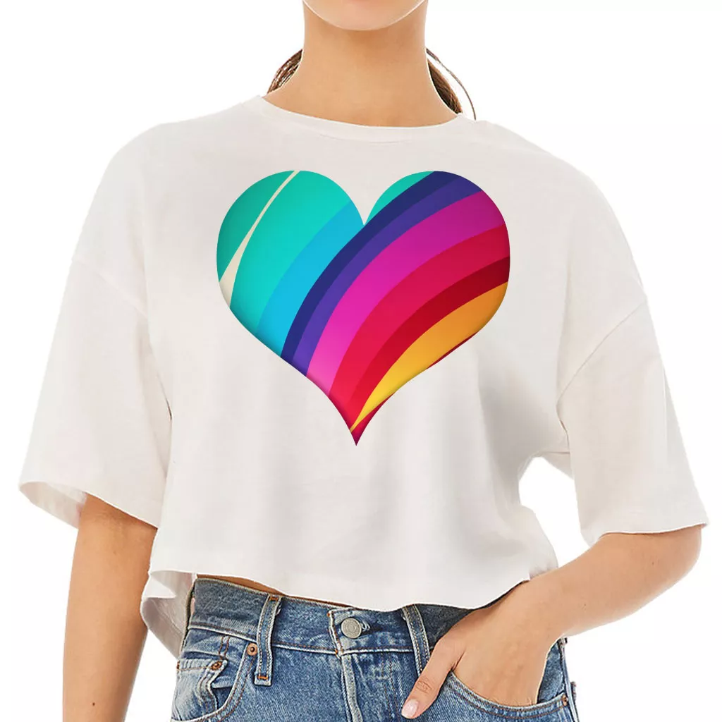 Rainbow Heart Women’s Crop Tee Shirt – Colorful Cropped T-Shirt – Cute Crop Top
