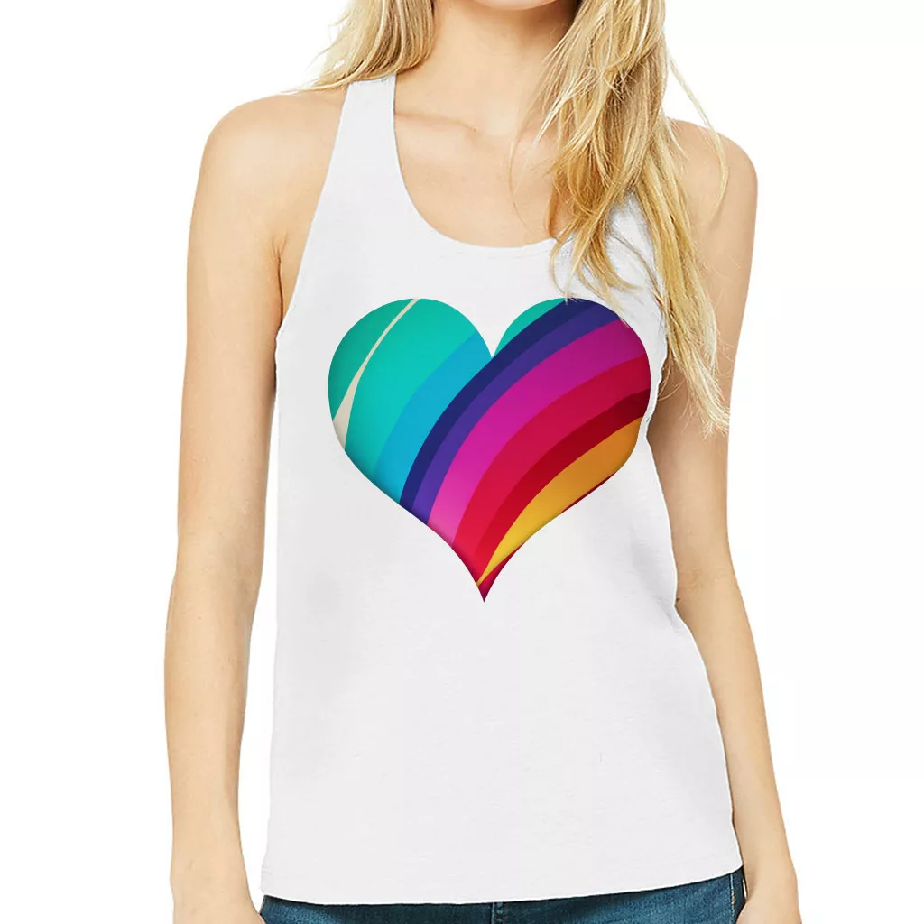 Rainbow Heart Women’s Racerback Tank – Colorful Tank Top – Cute Workout Tank