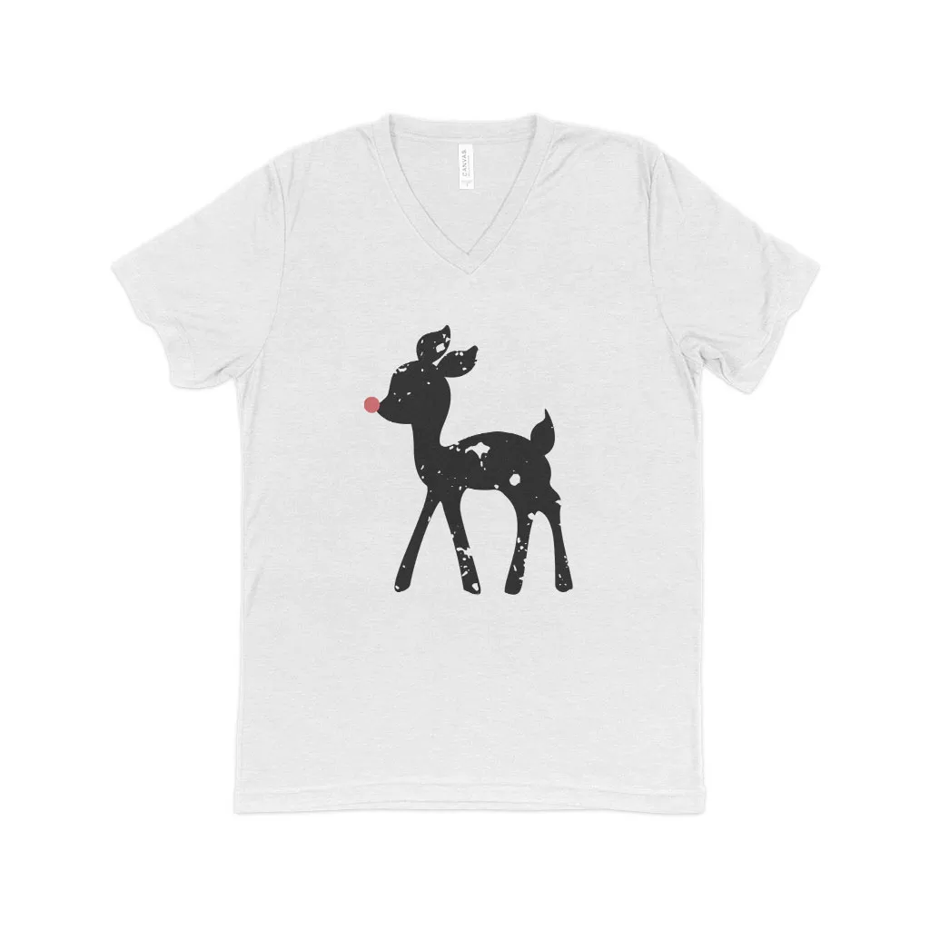 Reindeer Christmas Unisex Triblend V-Neck T-Shirt