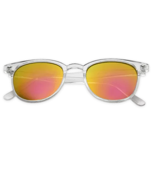 The retro round sunglasses feature a cool frosted frame and a colorful eye-catching mirrored lens. Bring on the sunny season in a fun colorful fashion!