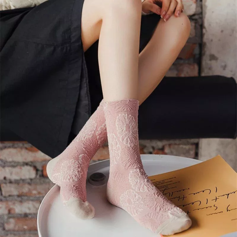 Step into a world of comfort and style with our Rose Floral Cotton Blend Socks, designed for the modern woman who cherishes both elegance and casual flair. These middle-tube socks, adorned with exquisite floral embossment, bring a touch of Japanese Harajuku retro vintage to your everyday streetwear. Perfect for adding a splash of pink and kawaii cuteness to your outfit, they promise to keep your feet cozy and stylish all day long.