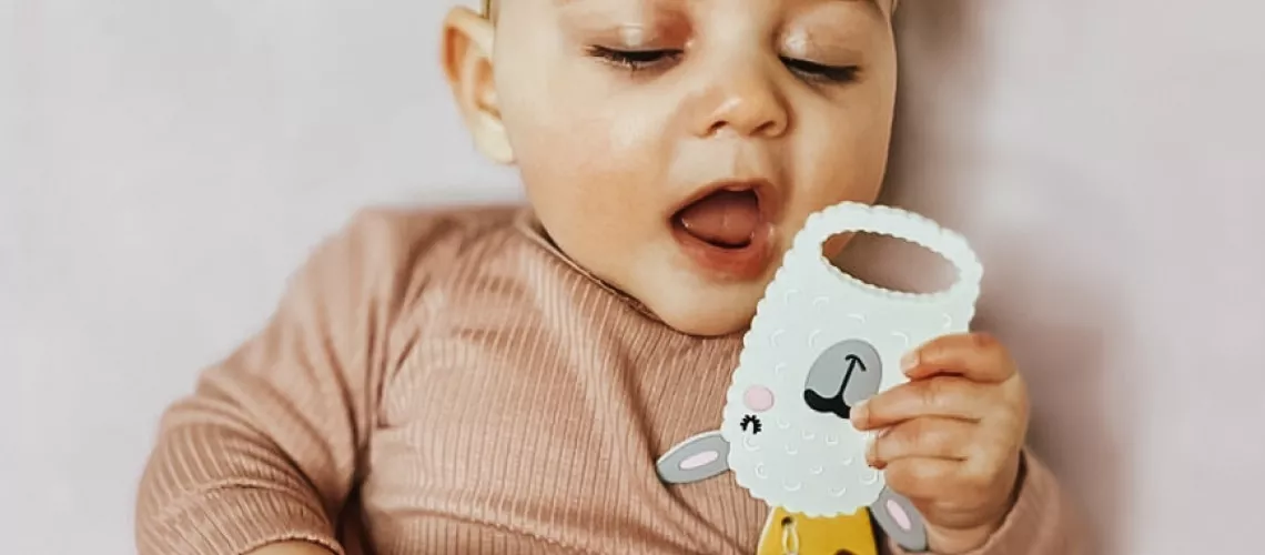 The back side of the teether is textured to help the baby discover and explore new senses while also massaging the emerging teeth.