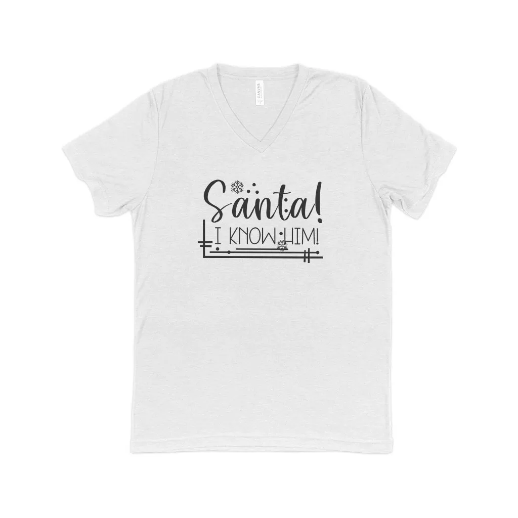 Santa I Know Him Unisex Triblend V-Neck T-Shirt