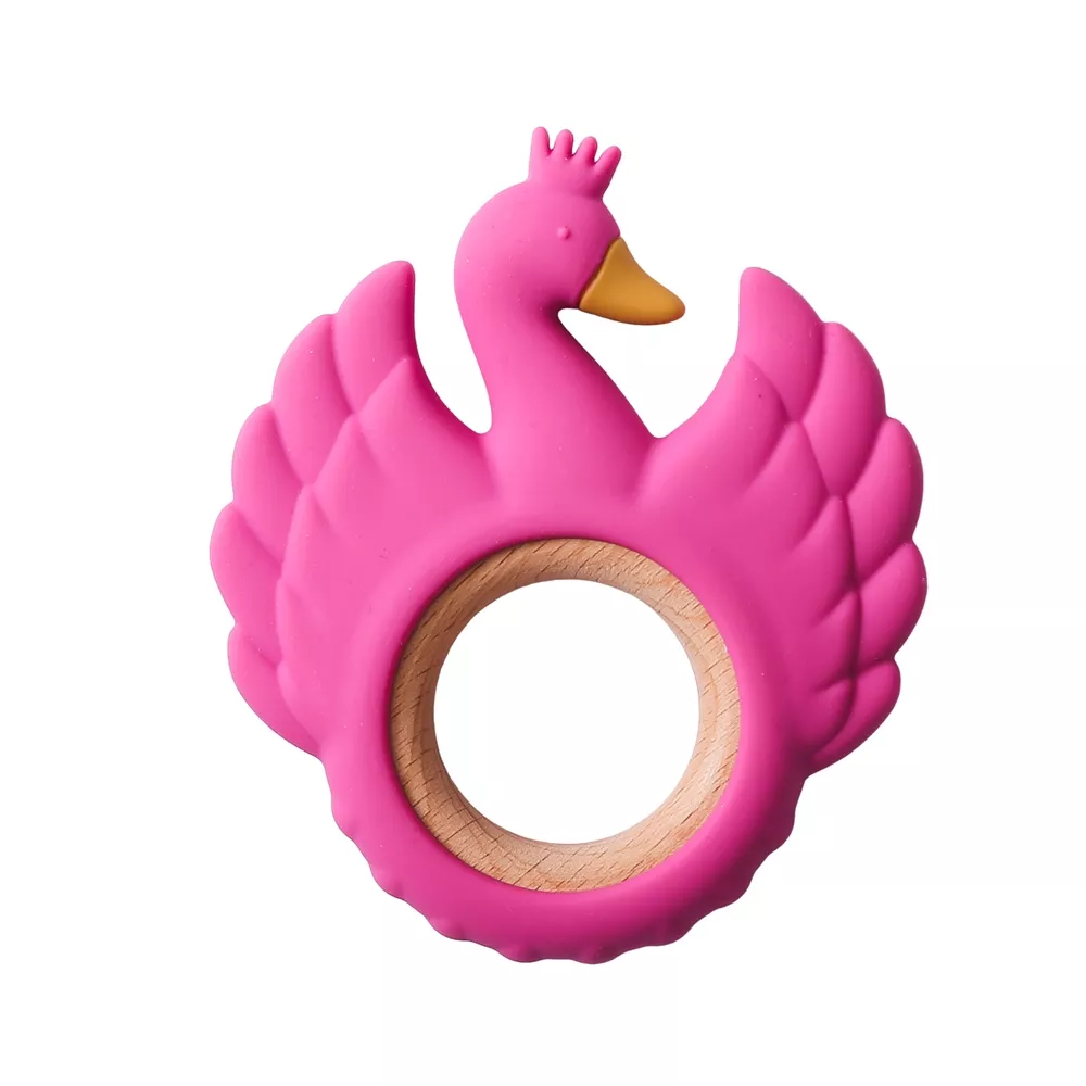 Teething can be a challenging time for both babies and parents, but this swan-shaped teething ring provides much-needed relief. The combination of soft silicone and smooth, natural wood helps massage tender gums while offering a satisfying chewing experience. Plus, the unique design keeps babies engaged, stimulating both their tactile and visual senses.