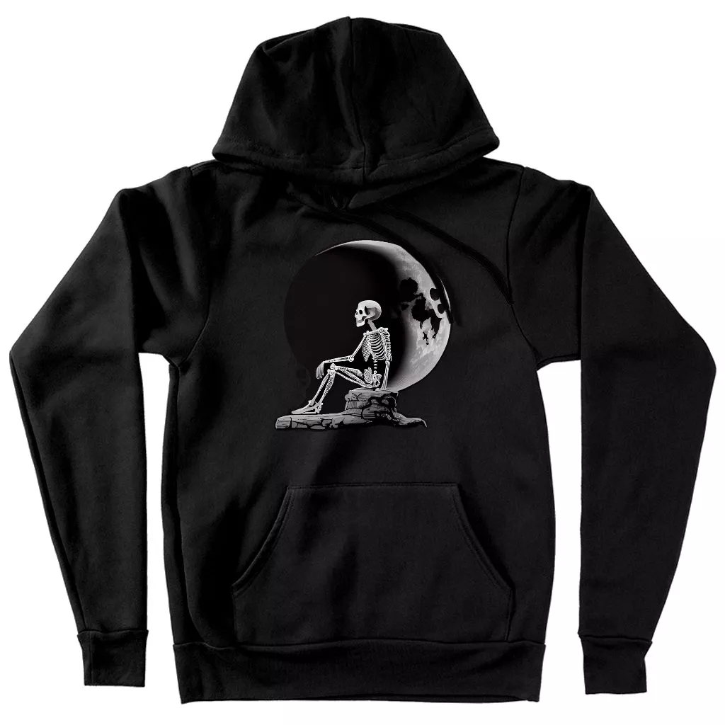 Skeleton Design Hooded Sweatshirt – Moon Hoodie – Themed Hoodie