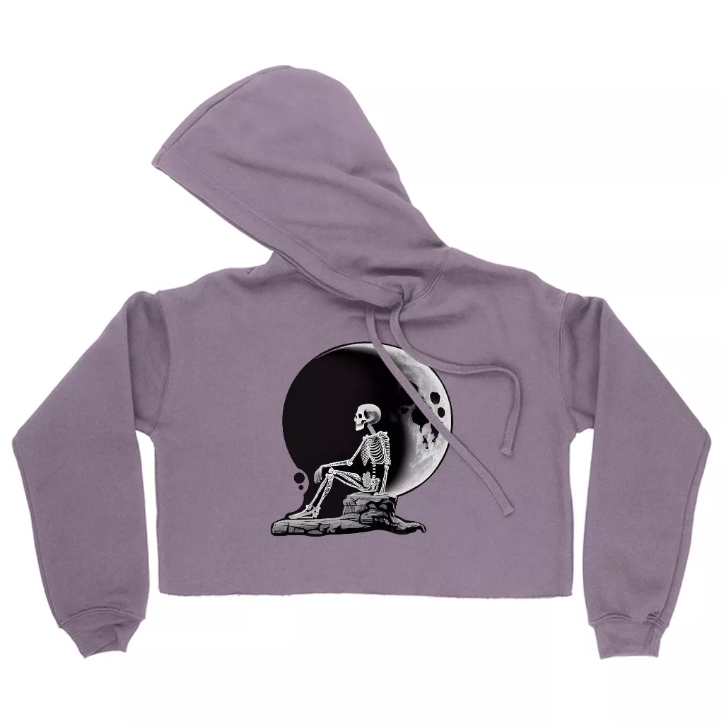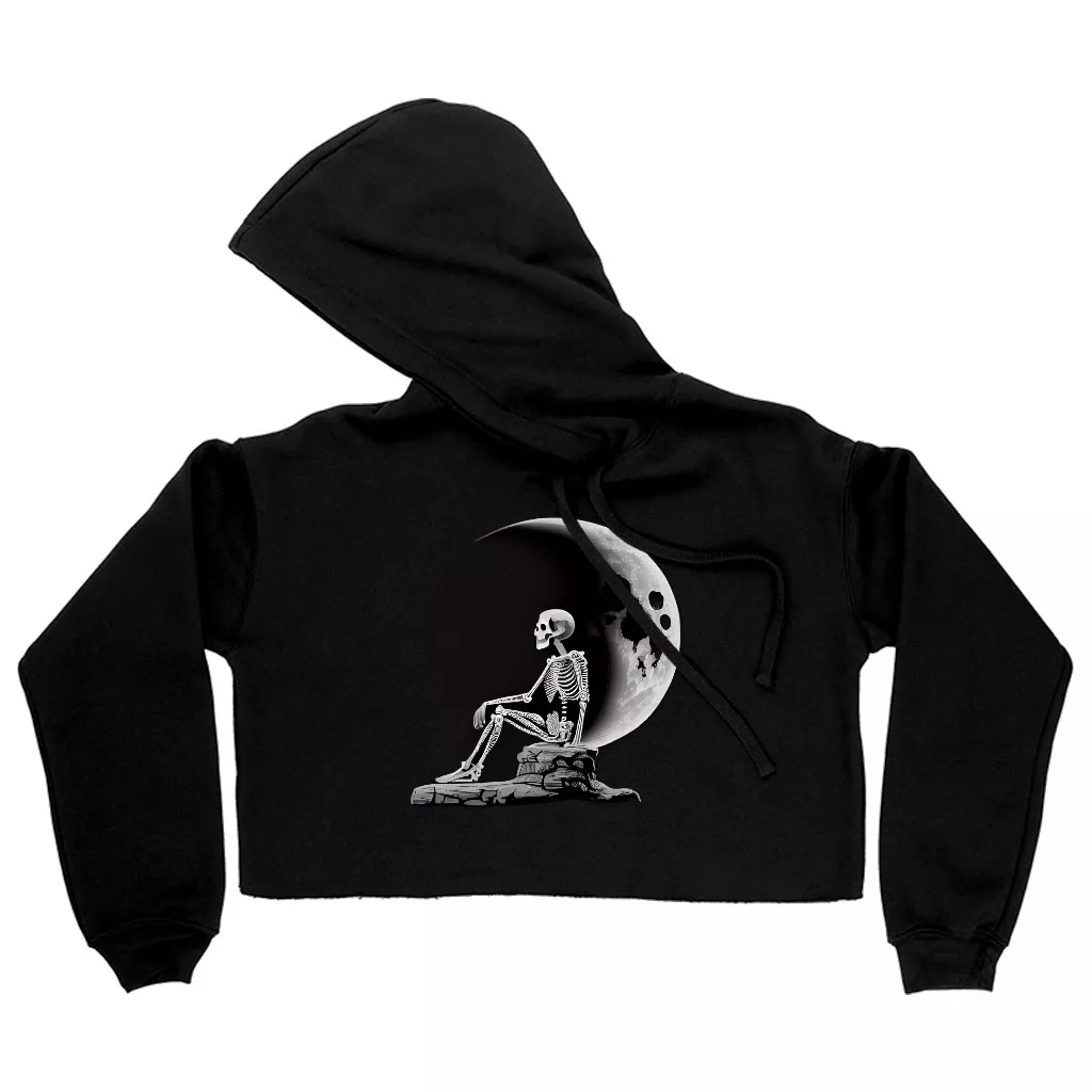 Skeleton Design Women’s Cropped Hoodie – Moon Cropped Hoodie – Themed Hooded Sweatshirt