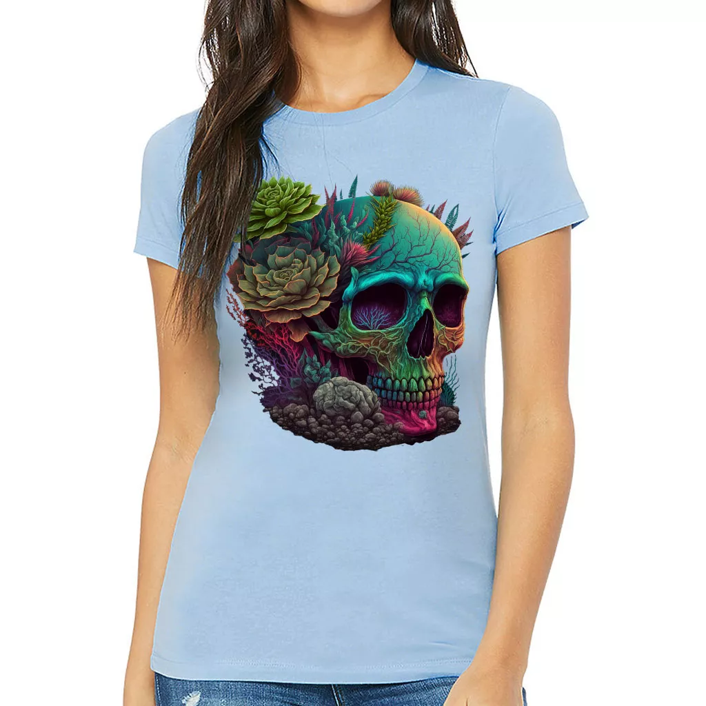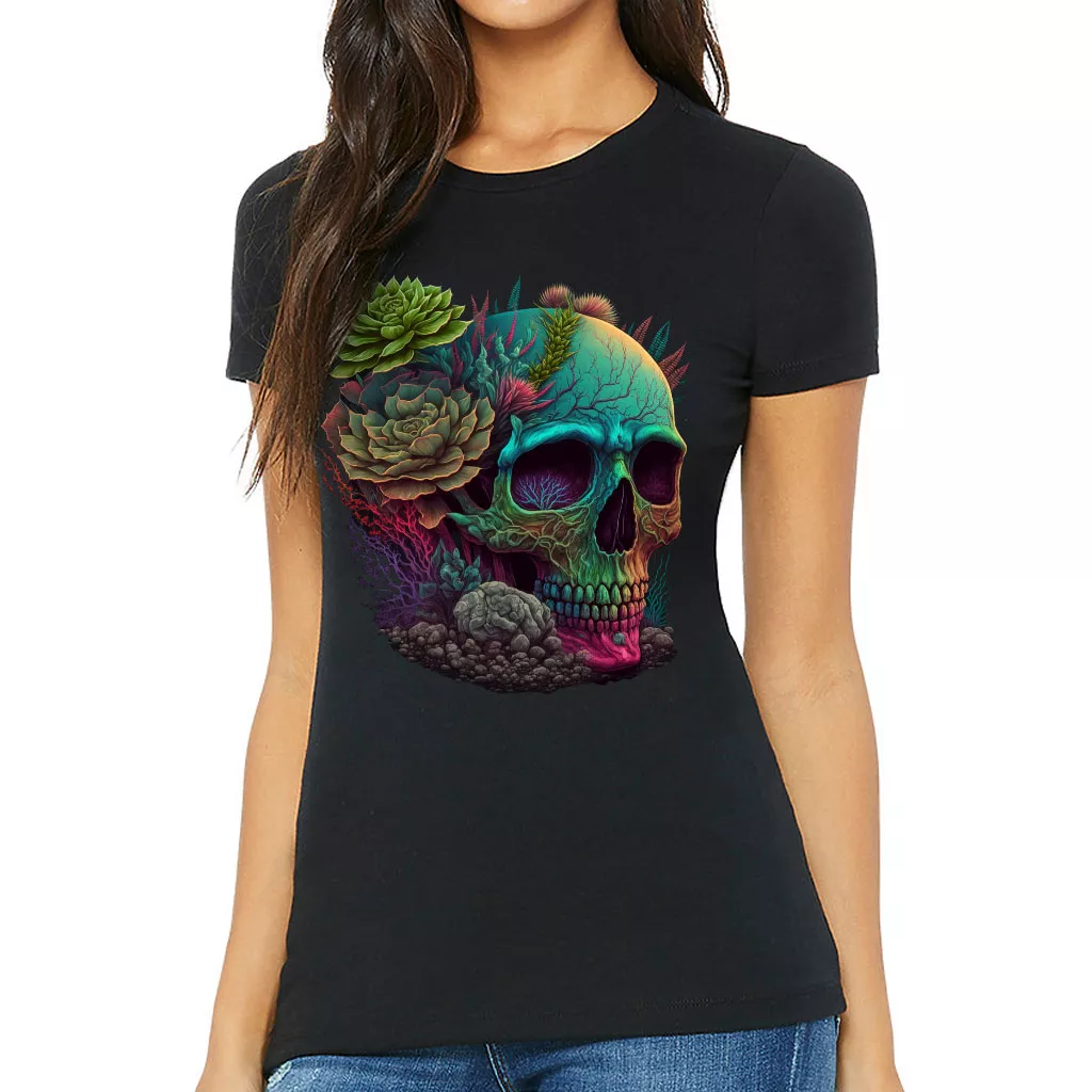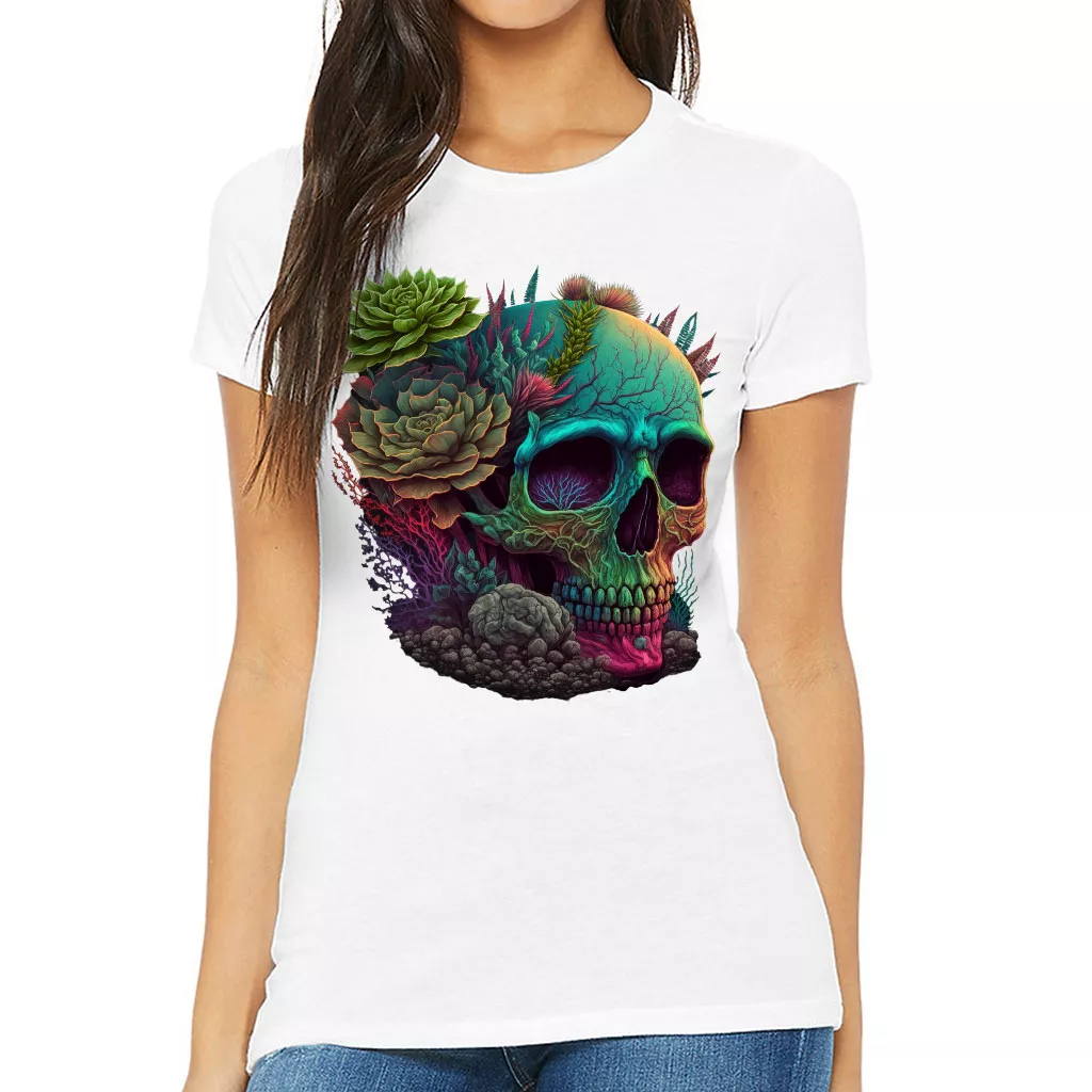 Skull Graphic Slim Fit T-Shirt – Gothic Women’s T-Shirt – Cool Art Slim Fit Tee
