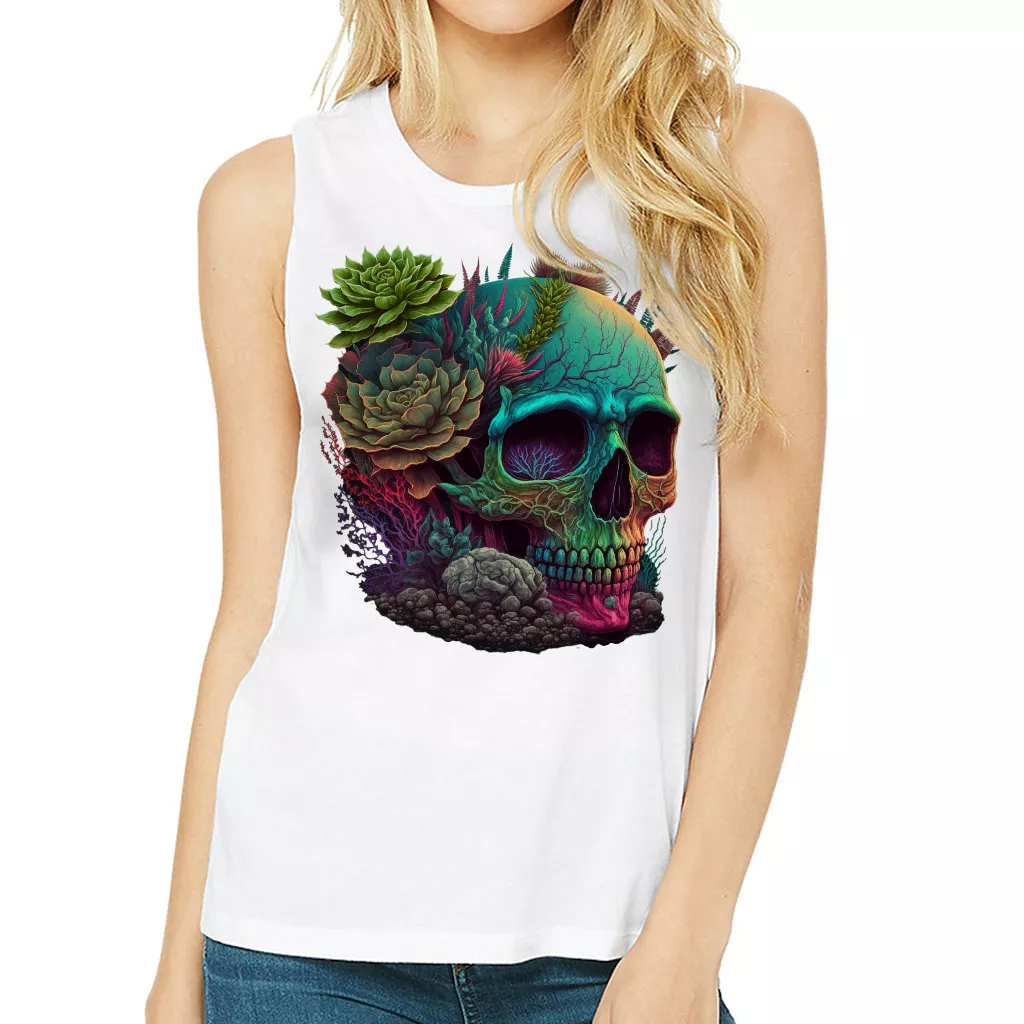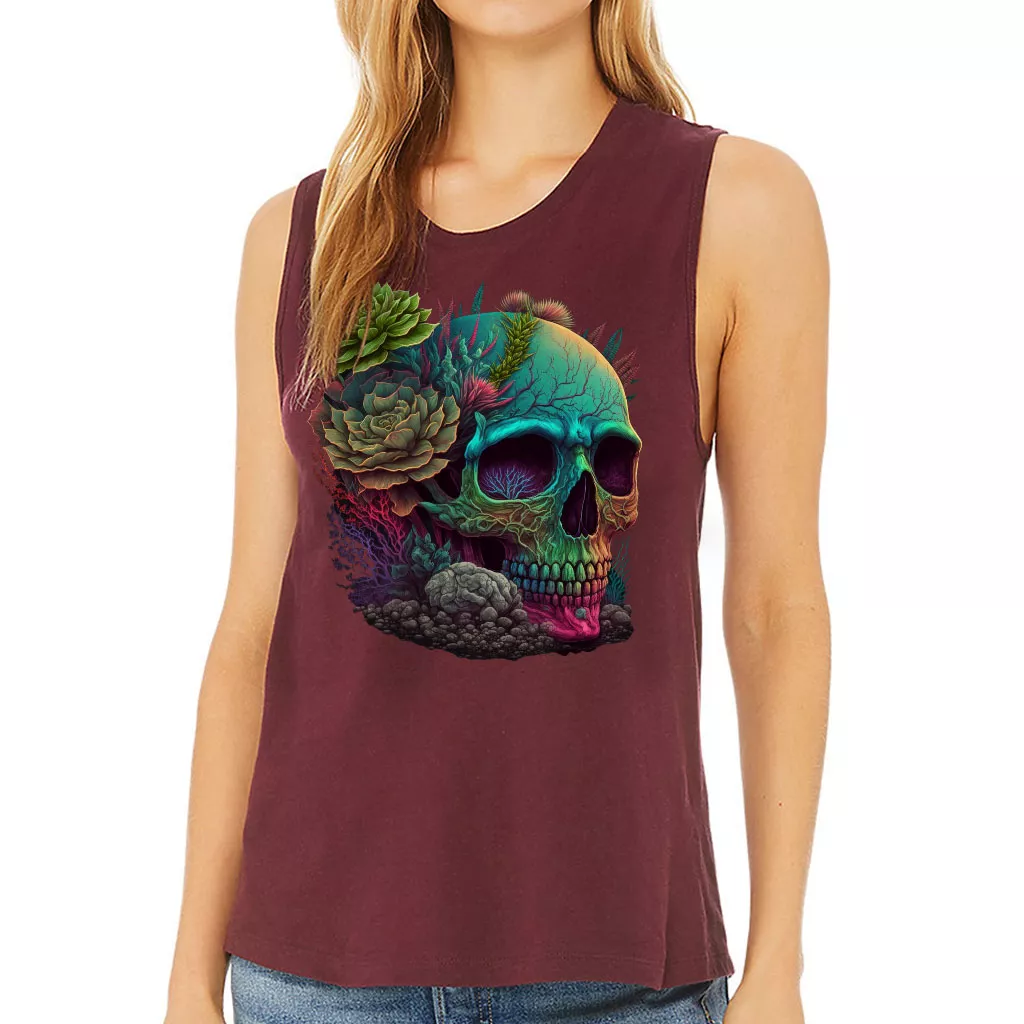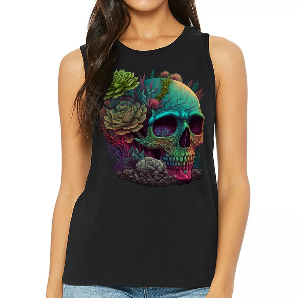Skull Graphic Women’s Muscle Tank – Gothic Tank Top – Cool Art Workout Tank