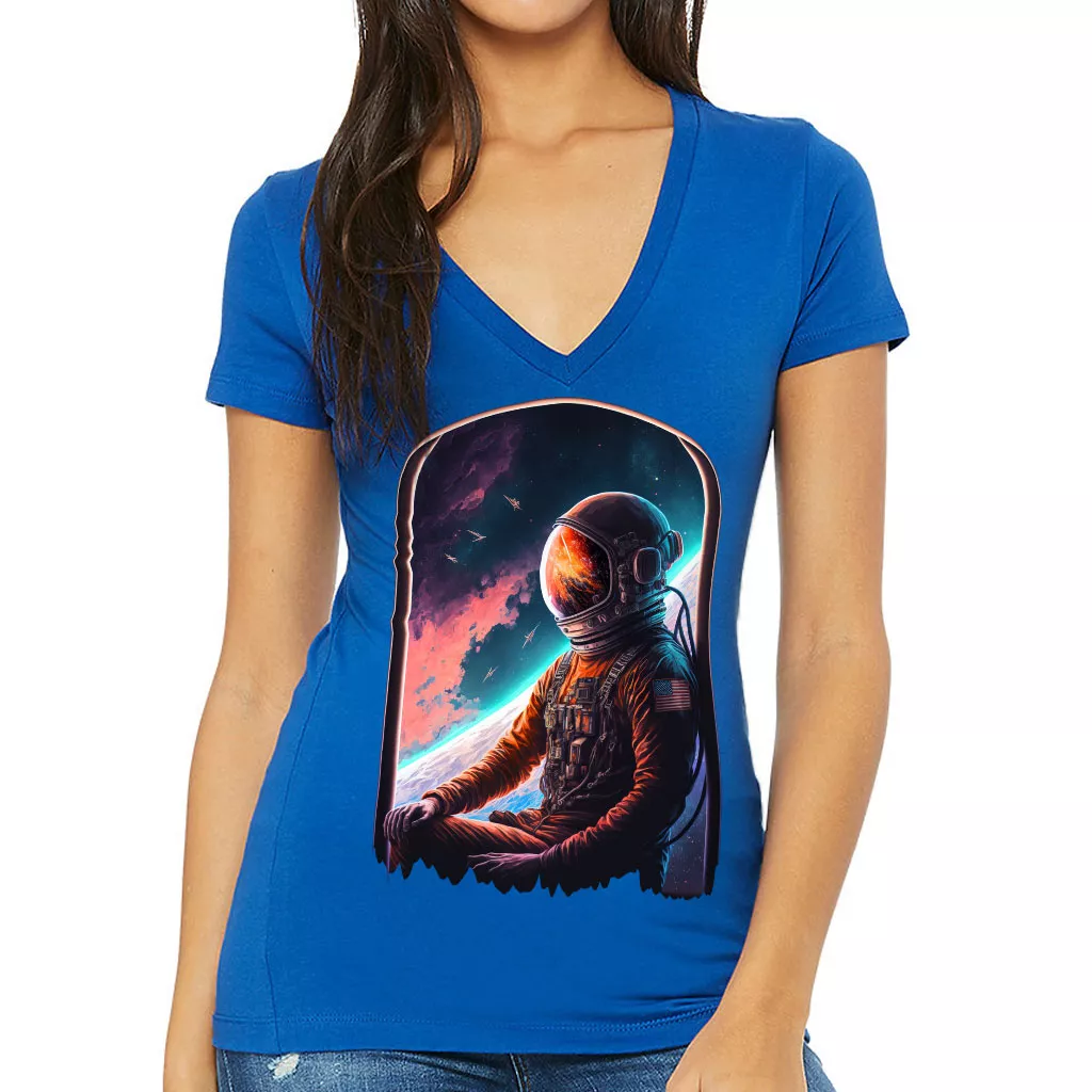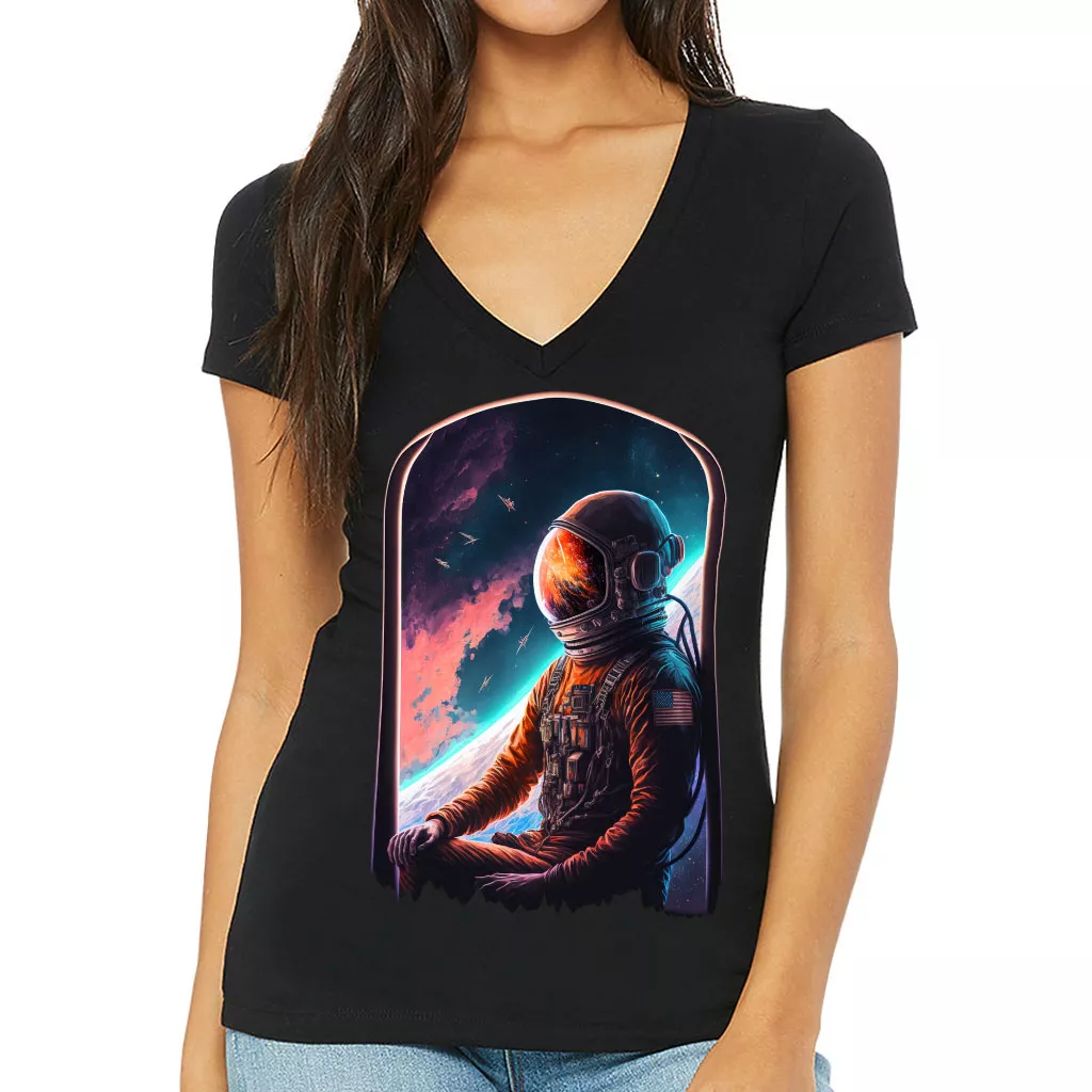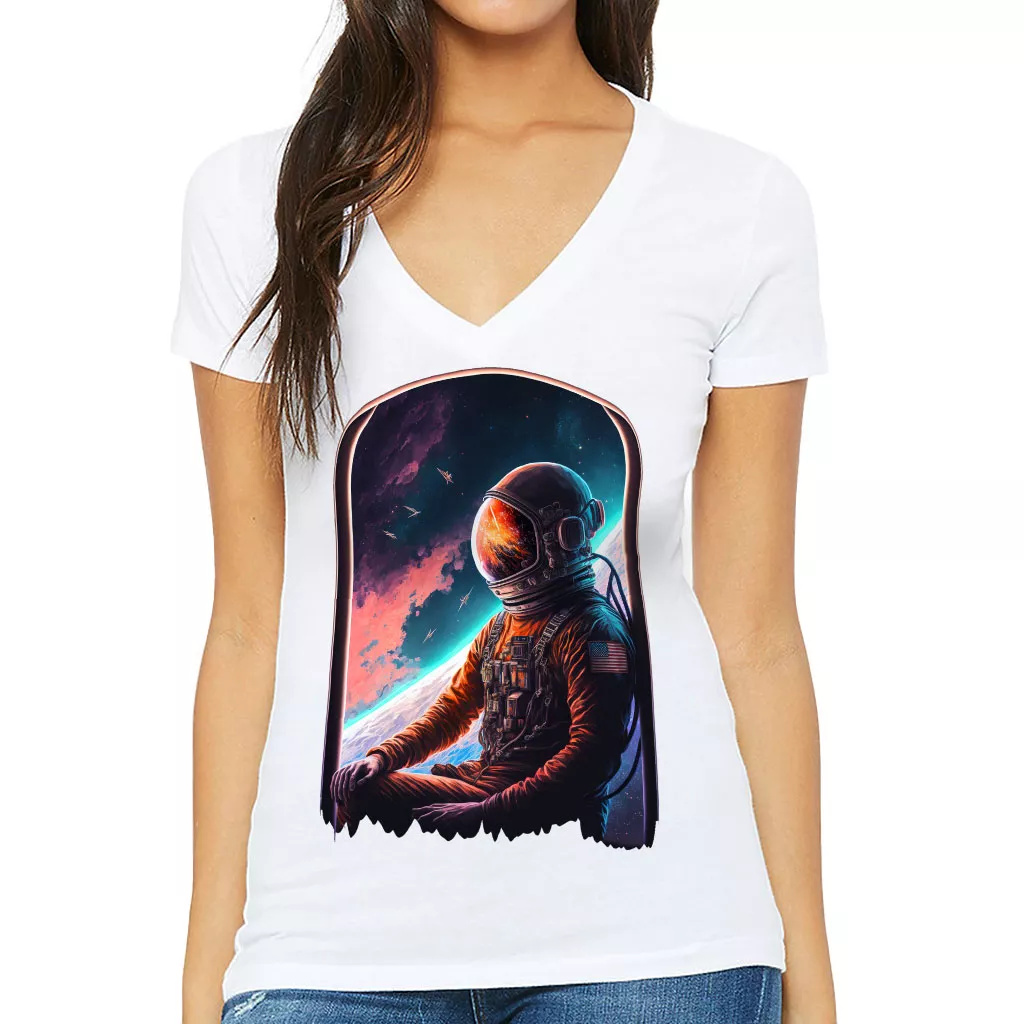 Space Astronaut Women’s V-Neck T-Shirt – Galaxy V-Neck Tee – Cool T-Shirt