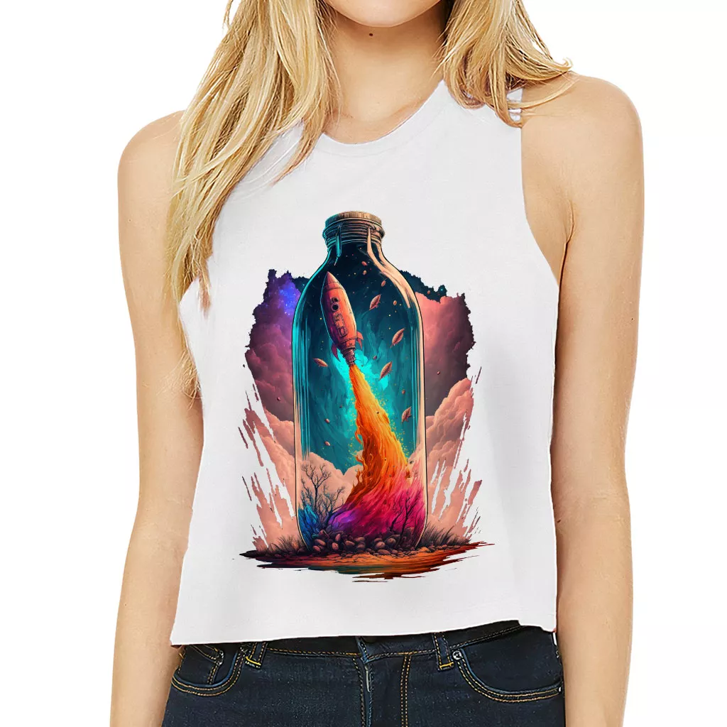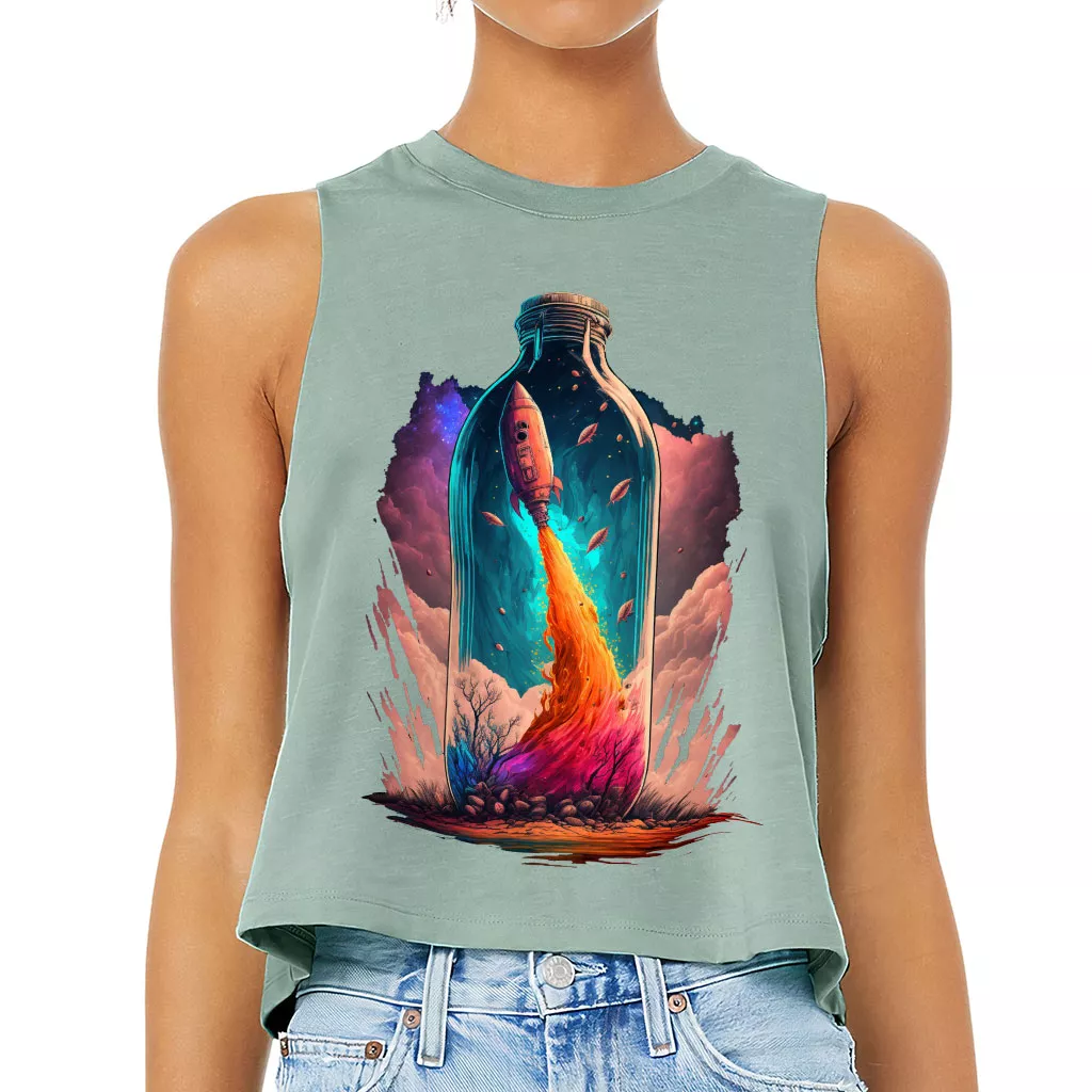 Spaceship Racerback Cropped Tank – Creative Women’s Tank – Graphic Tank Top