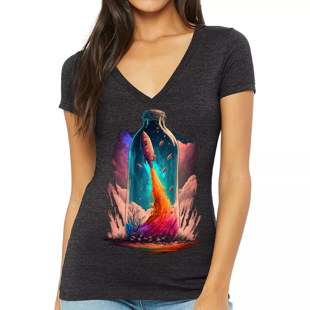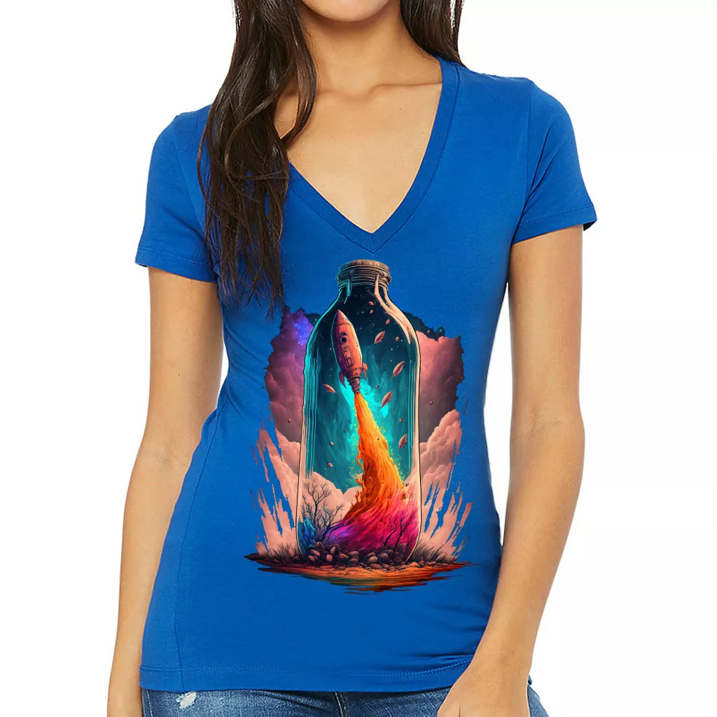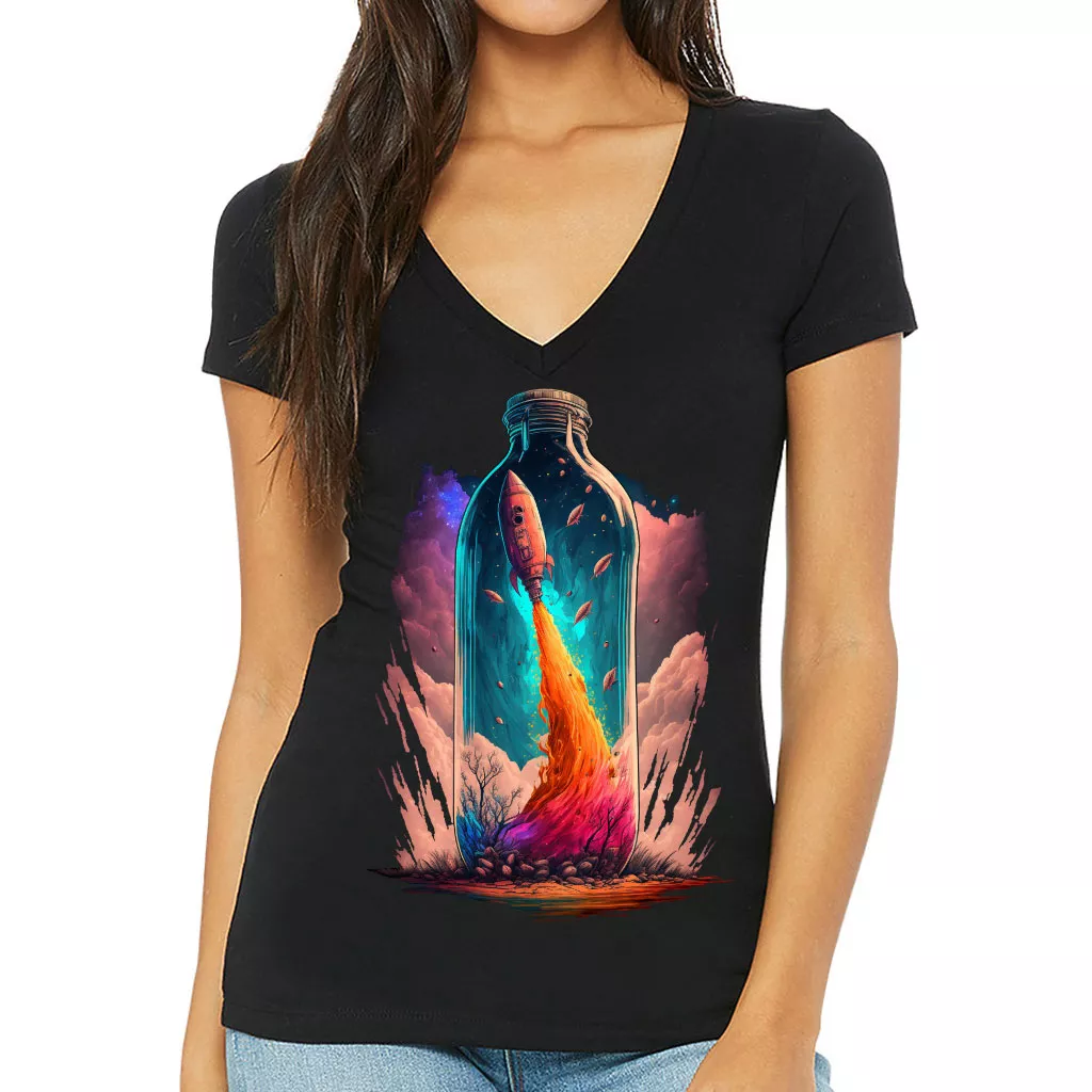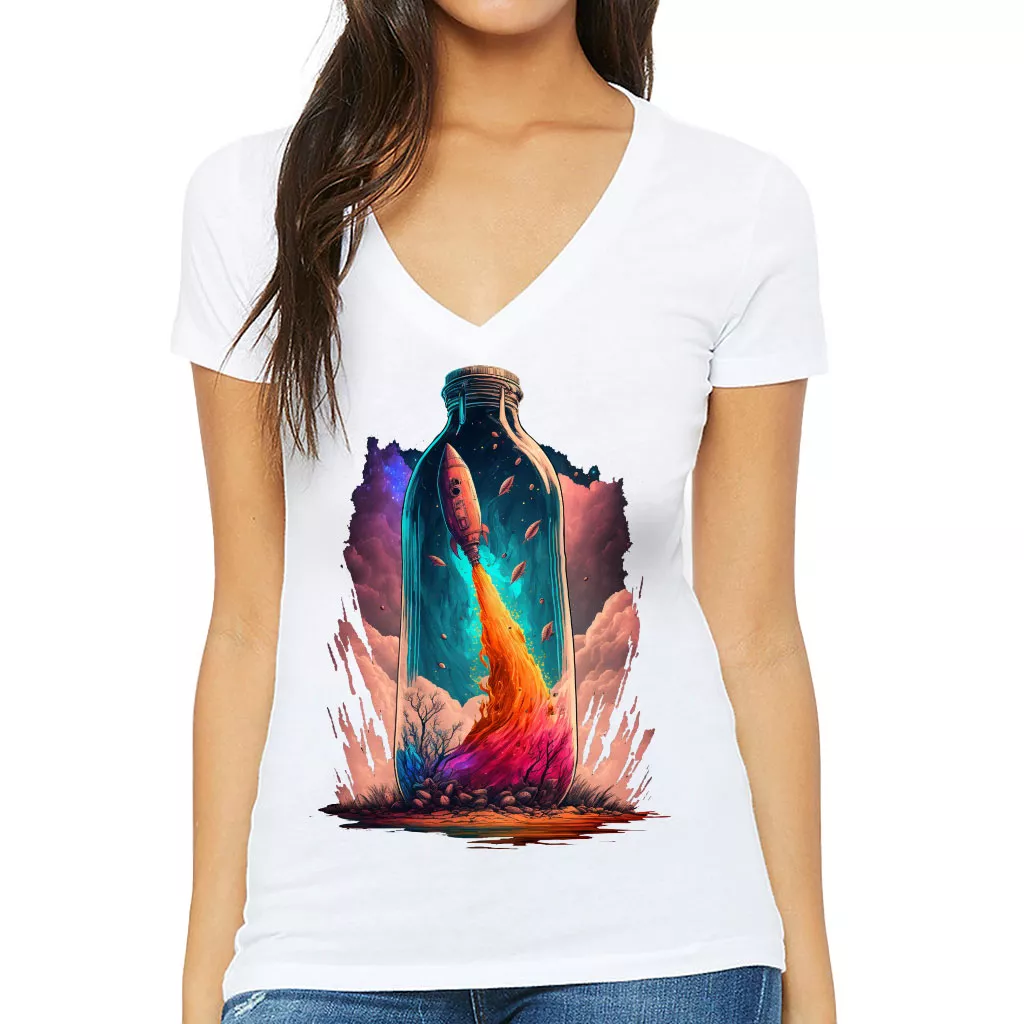 Spaceship Women’s V-Neck T-Shirt – Creative V-Neck Tee – Graphic T-Shirt