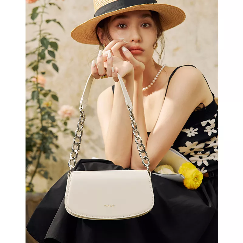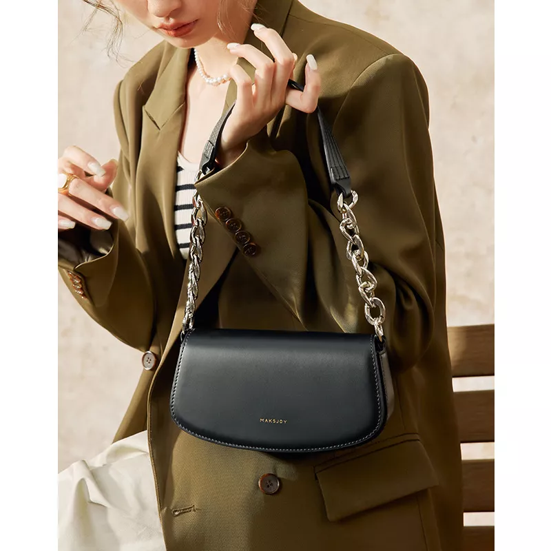 - Elegant Metal Chain Detail: Adds a touch of luxury and a modern edge to the classic saddle shape.