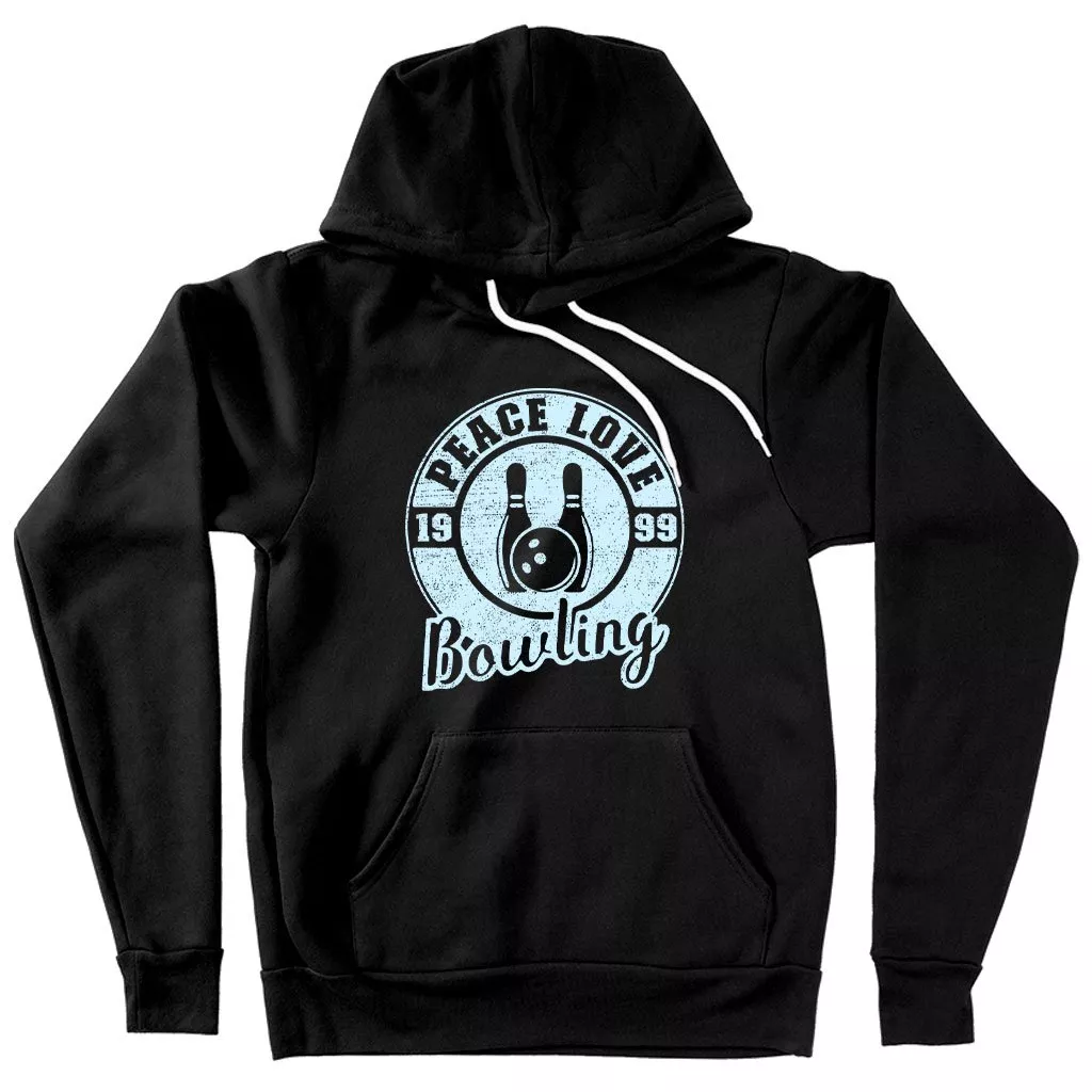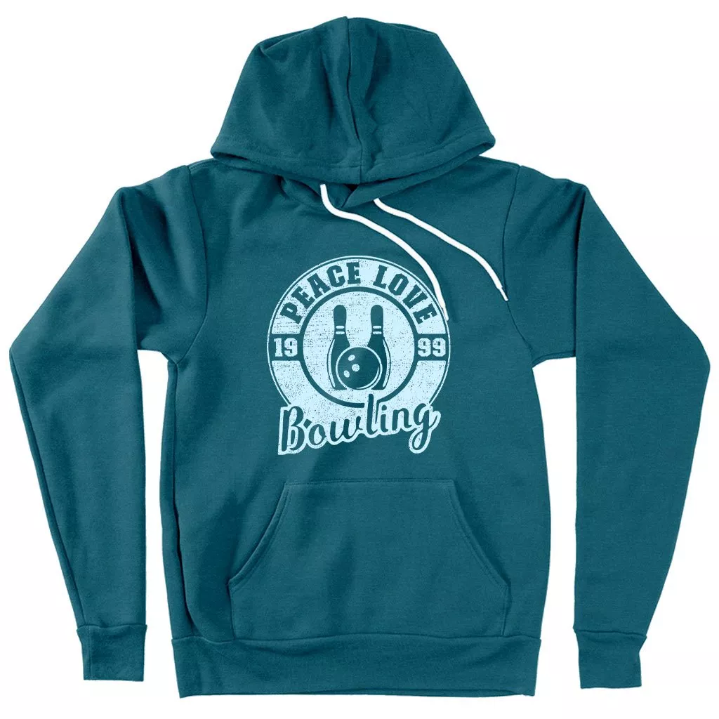 Sponge Fleece Peace Love Bowling Hoodie – Bowling Hoodie Design – Bowling Themed Hoodies