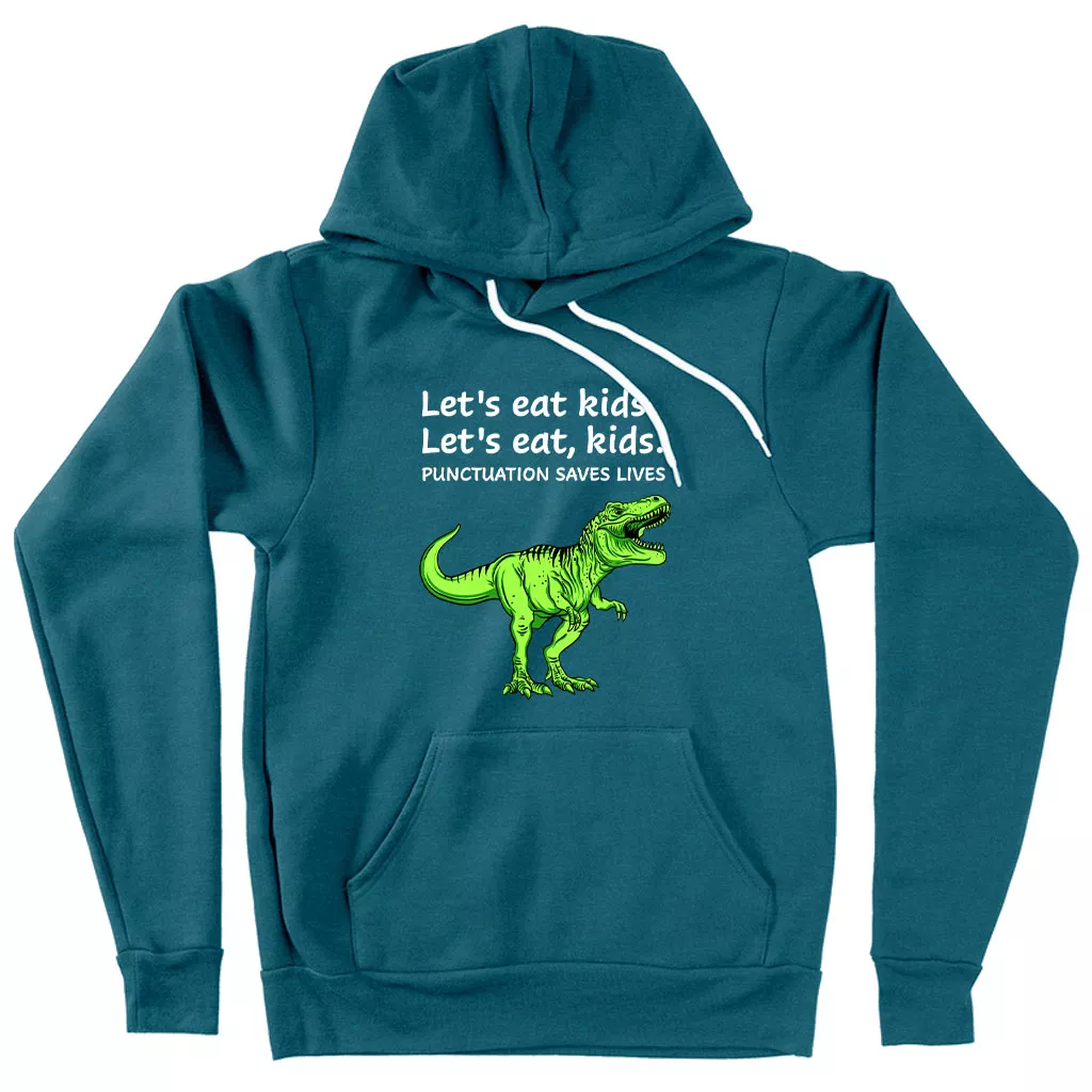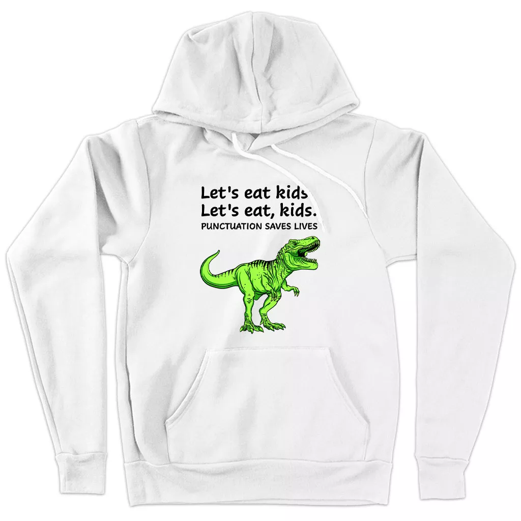 Sponge Fleece Punctuation Saves Lives Dinosaur Hoodie – Dinosaur Print Hoodie
