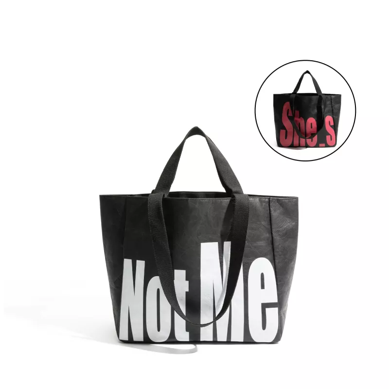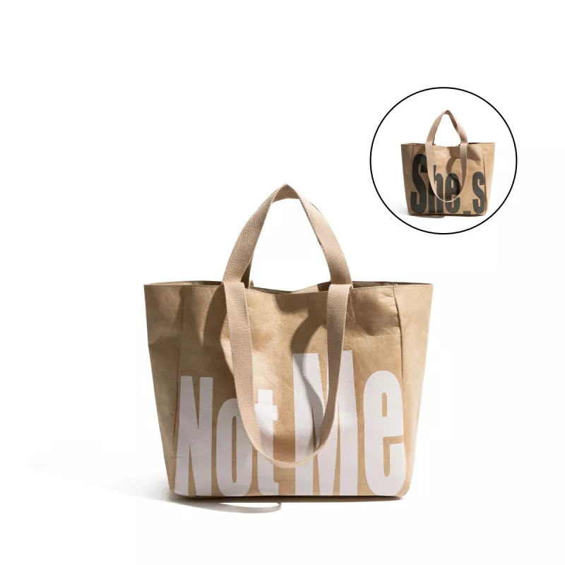 This simple yet stylish tote bag is the ideal addition to your daily routine. It’s not just a bag—it’s a statement piece. The bold letter print gives it a modern edge, while the soft kraft paper construction offers a lightweight and sustainable option for your everyday needs. Whether you’re carrying groceries, books, or your gym gear, the large interior provides ample space to fit everything you need, making it the perfect all-in-one bag.