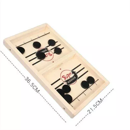 Introducing the ultimate game that combines excitement, strategy, and family fun – our Fast-Paced Tabletop Hockey Sling Game! Perfect for children aged 4 and up, this game is an excellent way to encourage interactive play and develop fine motor skills. Crafted with high-quality wood and designed for two players, this game promises endless hours of entertainment and friendly competition.