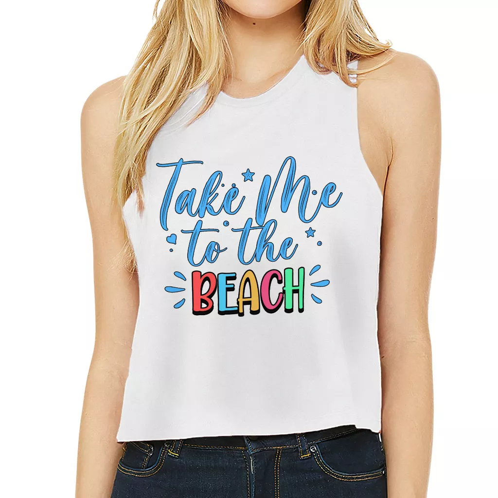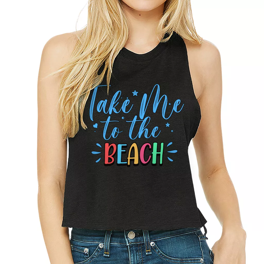 Take Me to the Beach Racerback Cropped Tank – Cool Women’s Tank – Trendy Tank Top