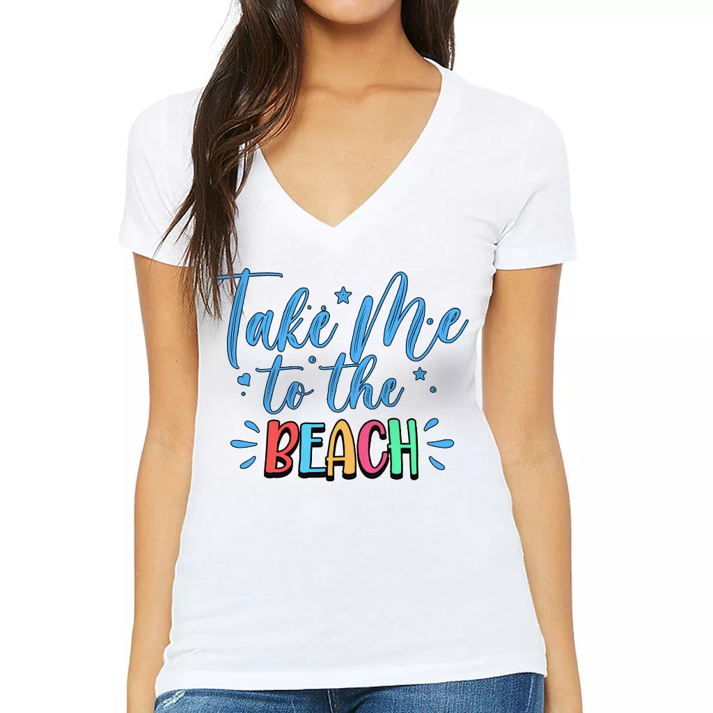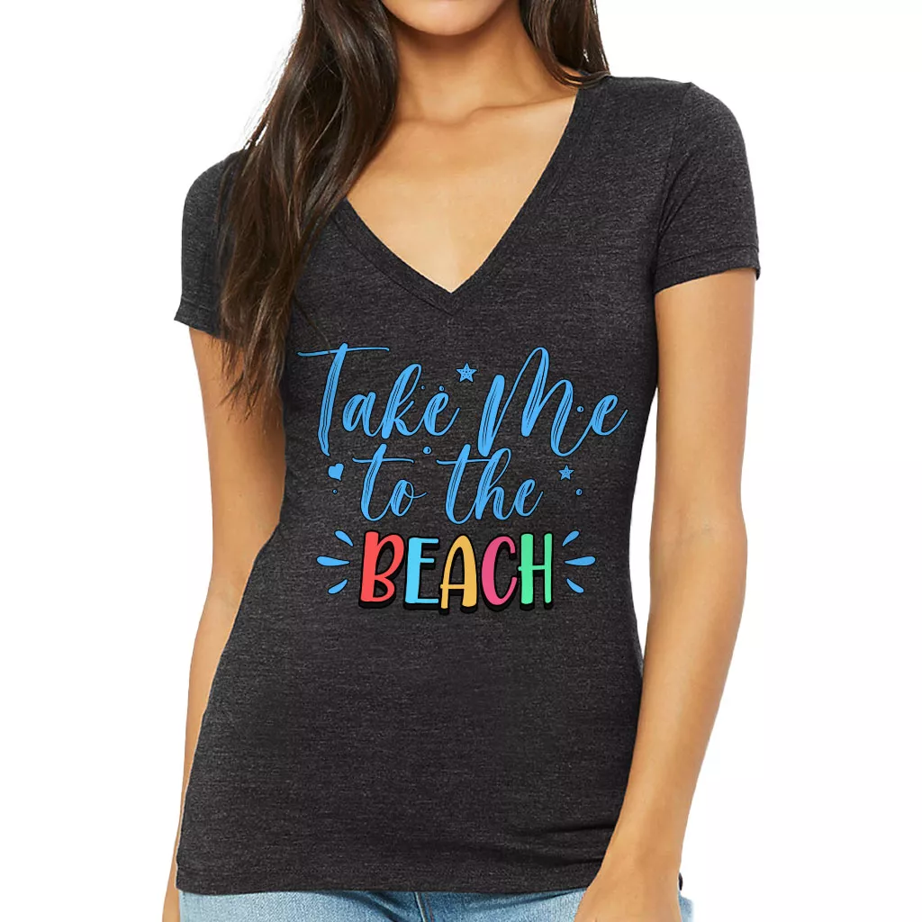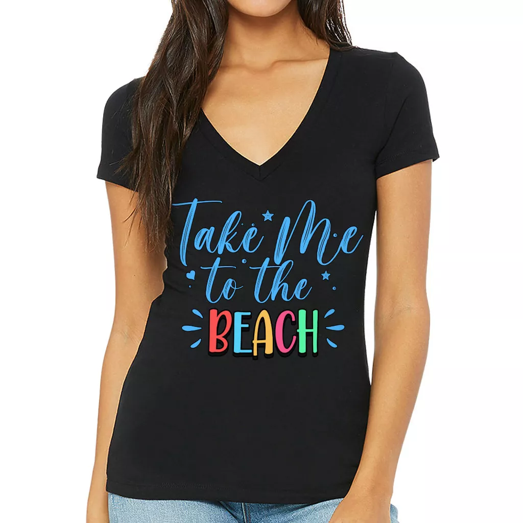 Take Me to the Beach Women’s V-Neck T-Shirt – Cool V-Neck Tee – Trendy T-Shirt
