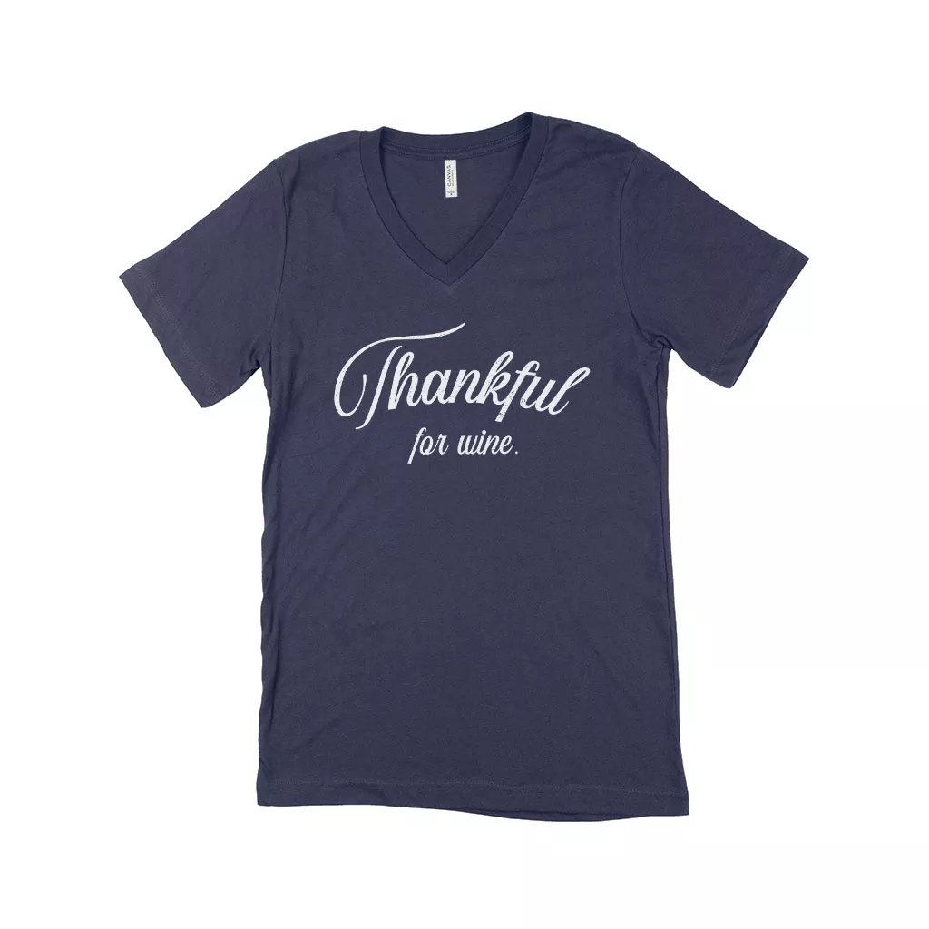 Thankful For Wine Unisex Jersey V-Neck T-Shirt