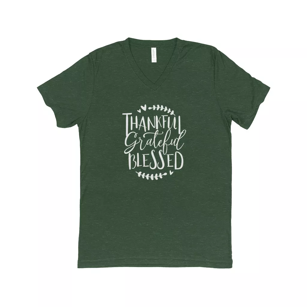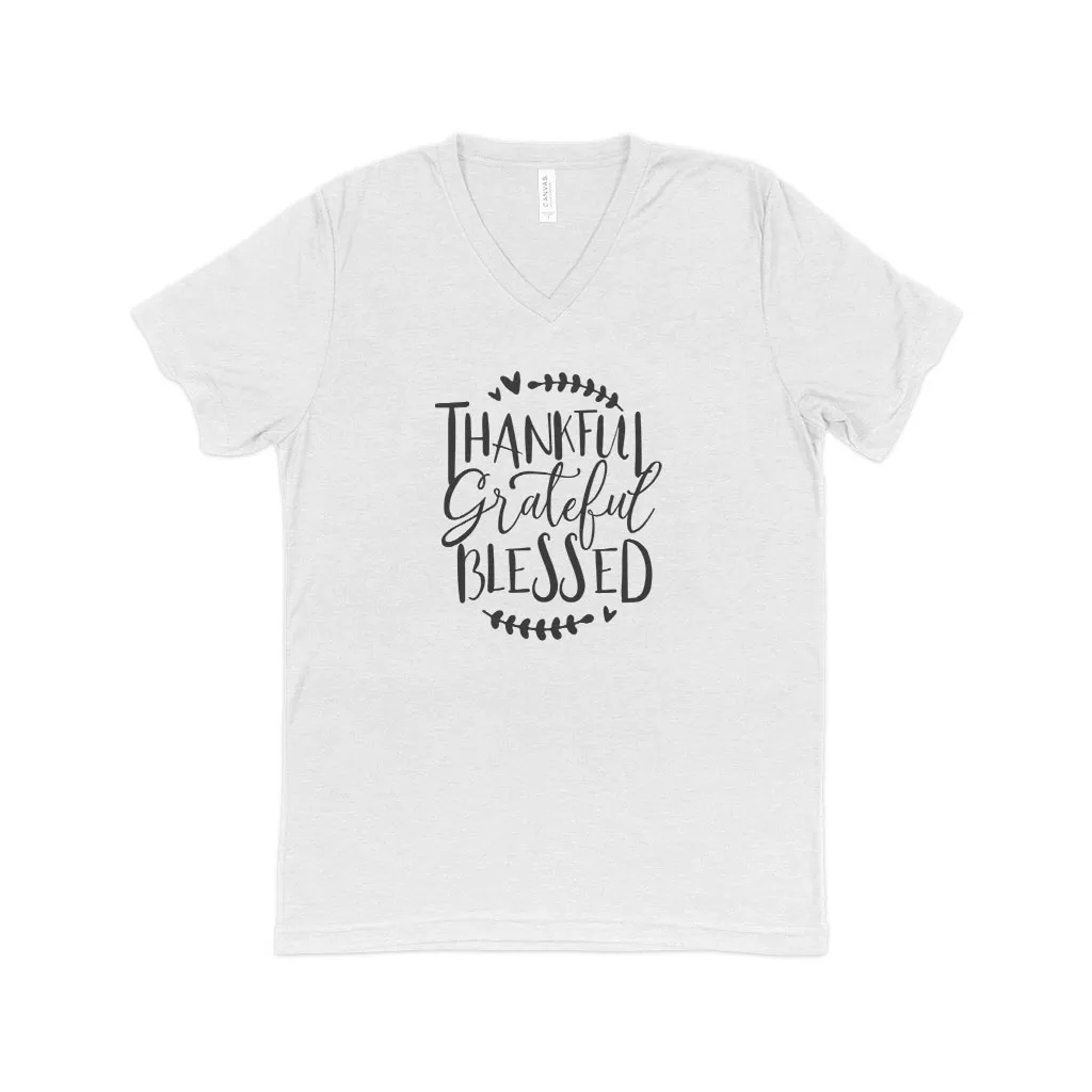 Thankful Grateful Blessed Unisex Triblend V-Neck T-Shirt