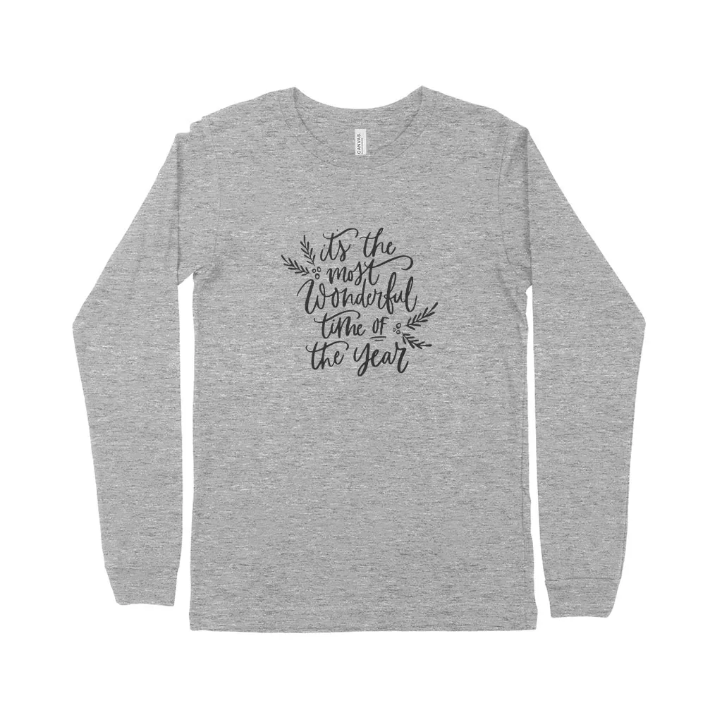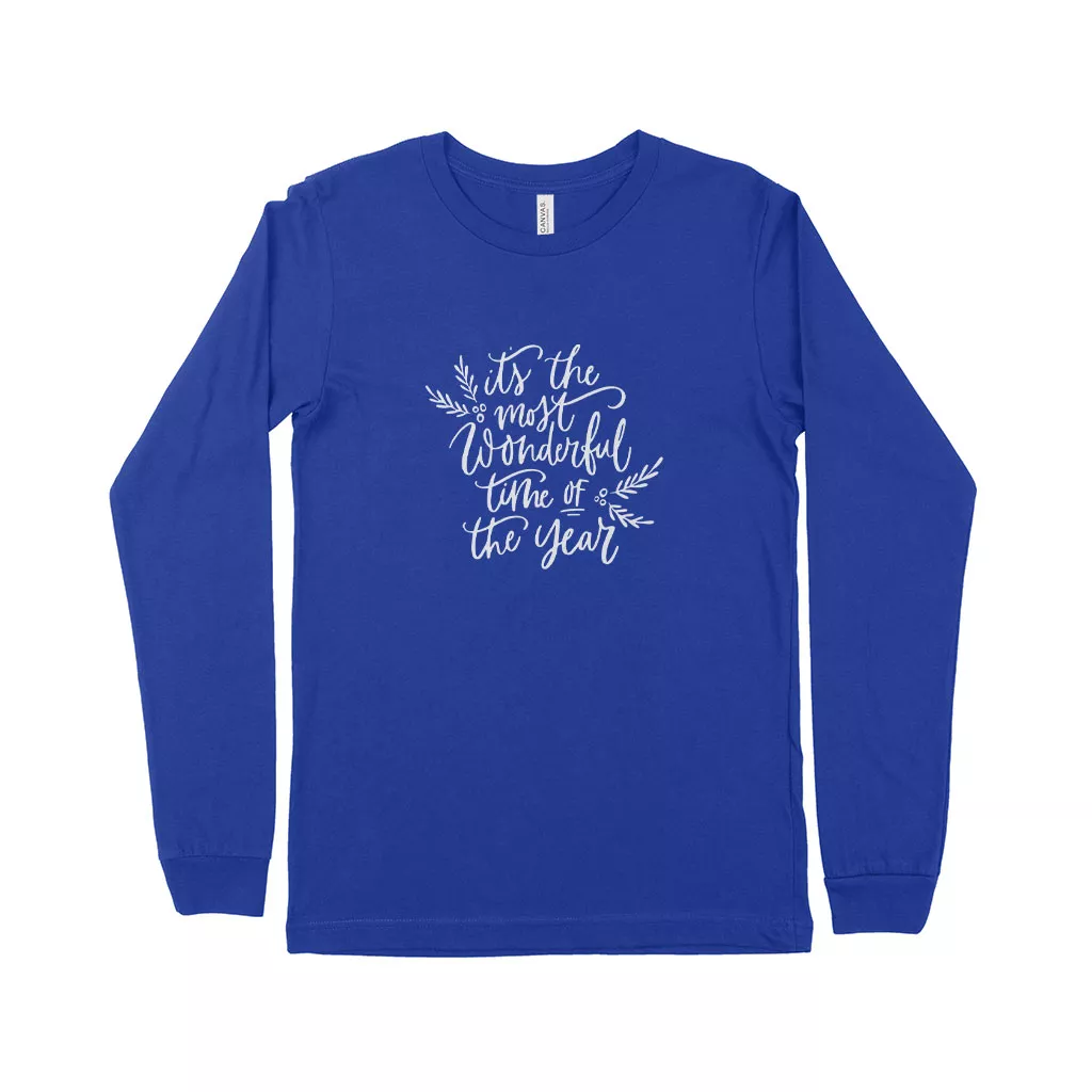 The Most Wonderful Time Unisex Jersey Long Sleeve T-Shirt is no ordinary piece of clothing. Our crew neck, ribbed cuff, and seamed sides provide a retail fit for clothing that’s true to size.