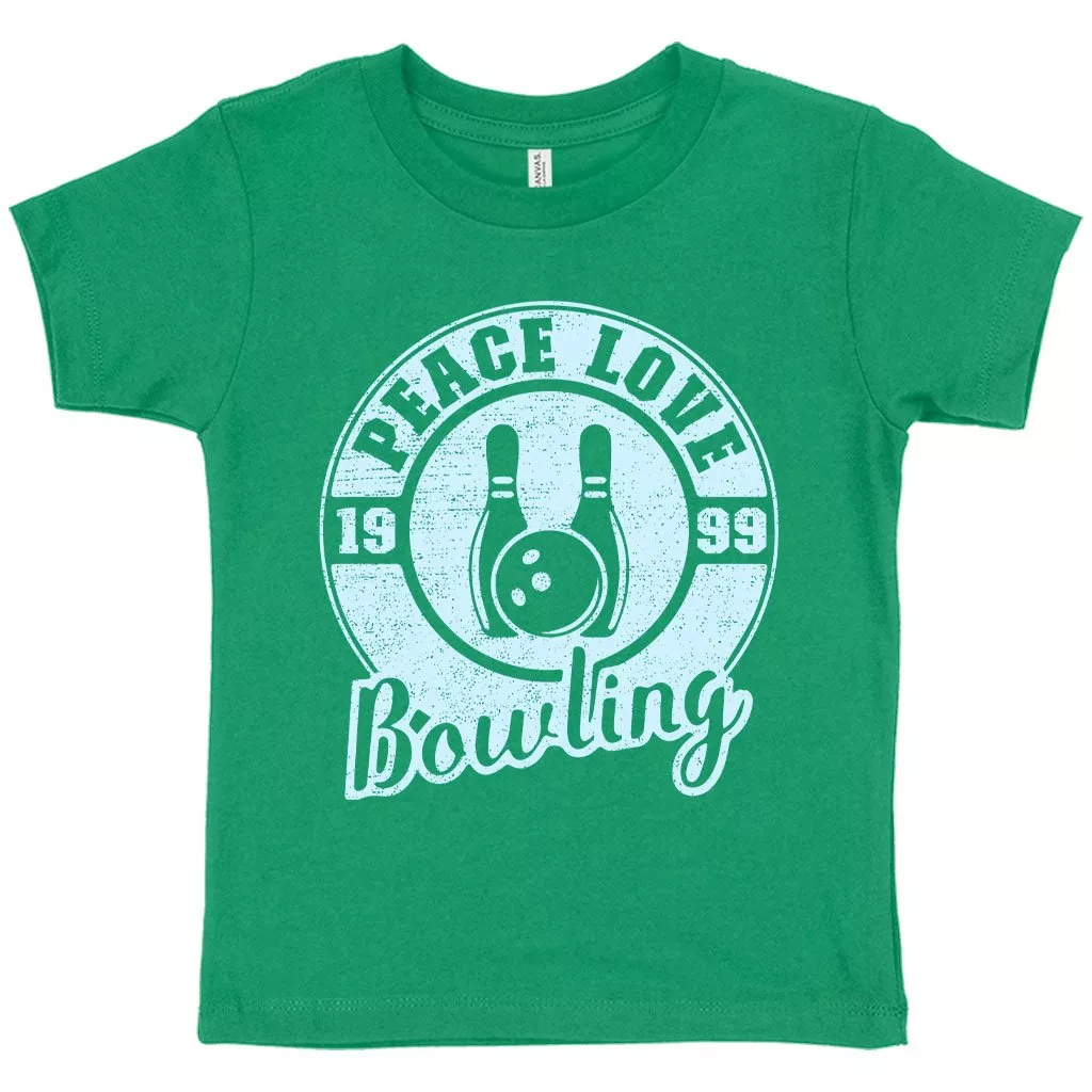 Toddler Peace Love Bowling T-Shirt – Bowling T-Shirt Design – Bowling Themed T-Shirts