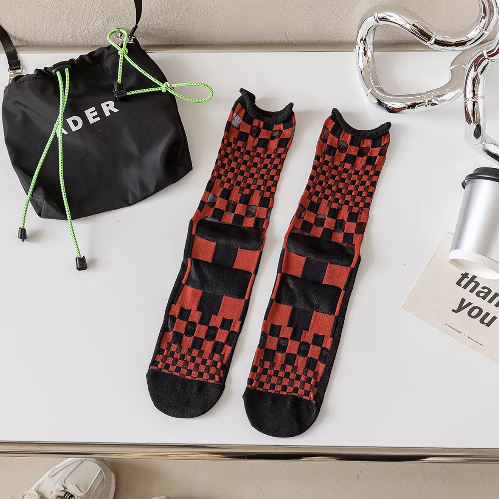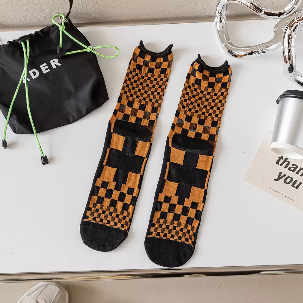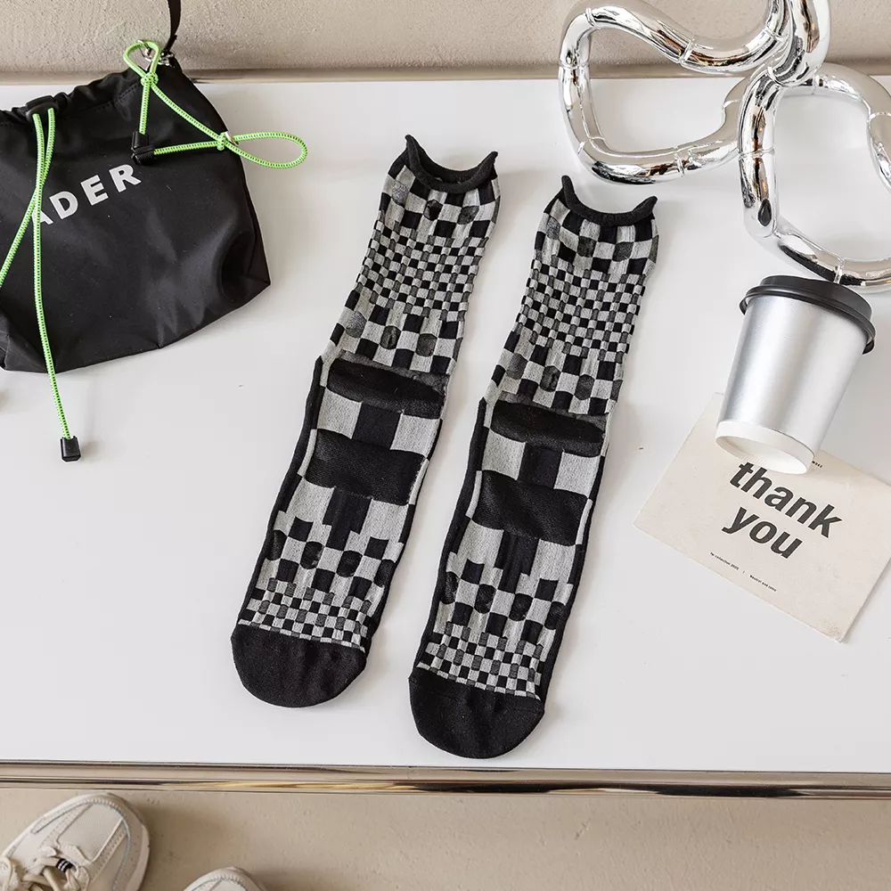 Elevate your wardrobe with our new summer and autumn women’s socks, designed to blend creativity with comfort. These retro-inspired tube socks feature bold geometric patterns that make a statement while keeping your feet cozy and fresh. Crafted with a premium blend of cotton, polyester, and nylon, they deliver the perfect combination of durability, softness, and stretch. Whether you’re heading to a casual outing, hitting the gym, or lounging at home, these socks are your go-to accessory for chic, everyday wear.
