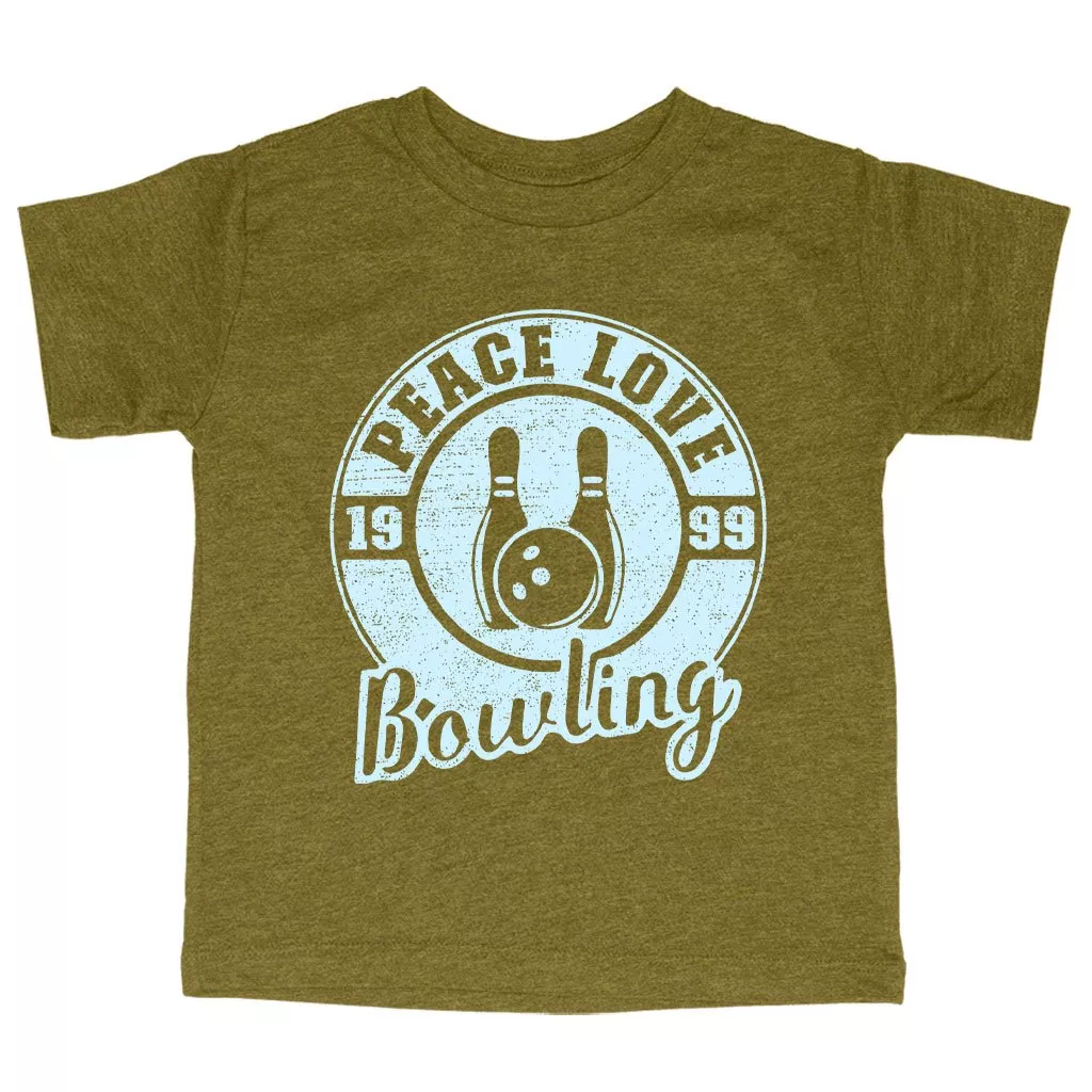 Triblend Toddler Peace Love Bowling T-Shirt – Bowling T-Shirt Design – Bowling Themed T-Shirts