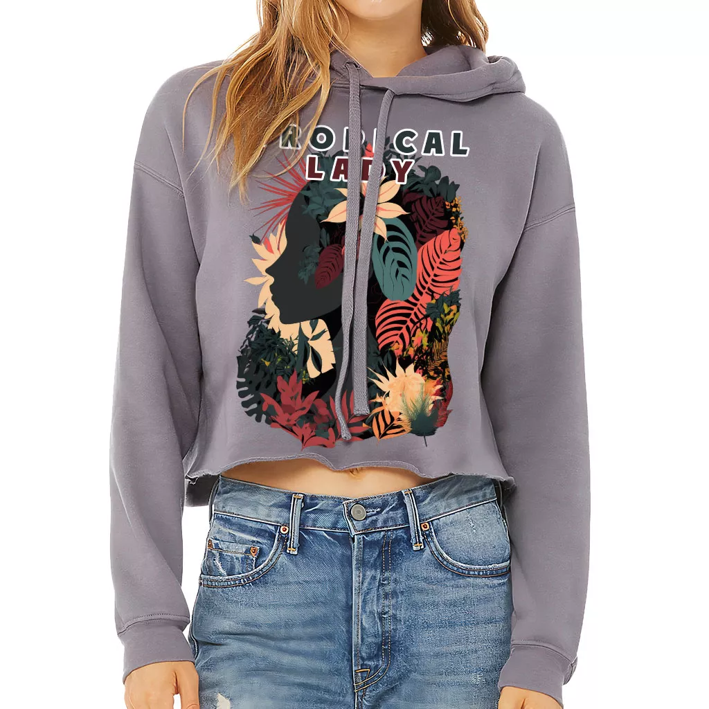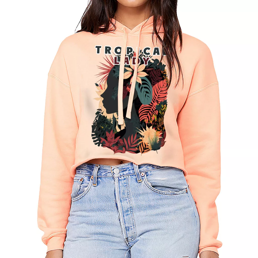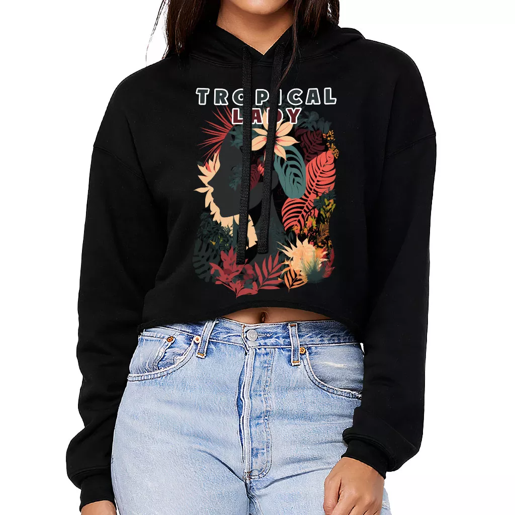 Tropical Women’s Cropped Hoodie – Cute Design Cropped Hoodie – Illustration Hooded Sweatshirt