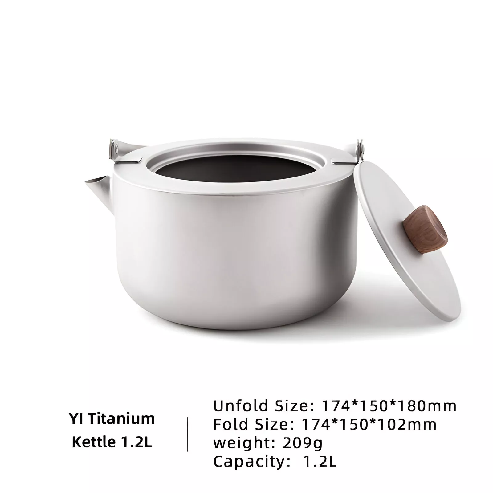 Designed for adventurers who demand durability without the extra weight, this ultralight titanium kettle is your perfect companion for camping, hiking, and backpacking. With a capacity of 1.2L (40.5 oz), it provides just the right amount of water for a small group of outdoor explorers. The foldable handle makes it easy to store, while the titanium construction ensures it can withstand the toughest conditions without adding bulk to your gear. Weighing just 0.46 lbs (209g), this kettle is lightweight, strong, and ready to go wherever your next adventure takes you.