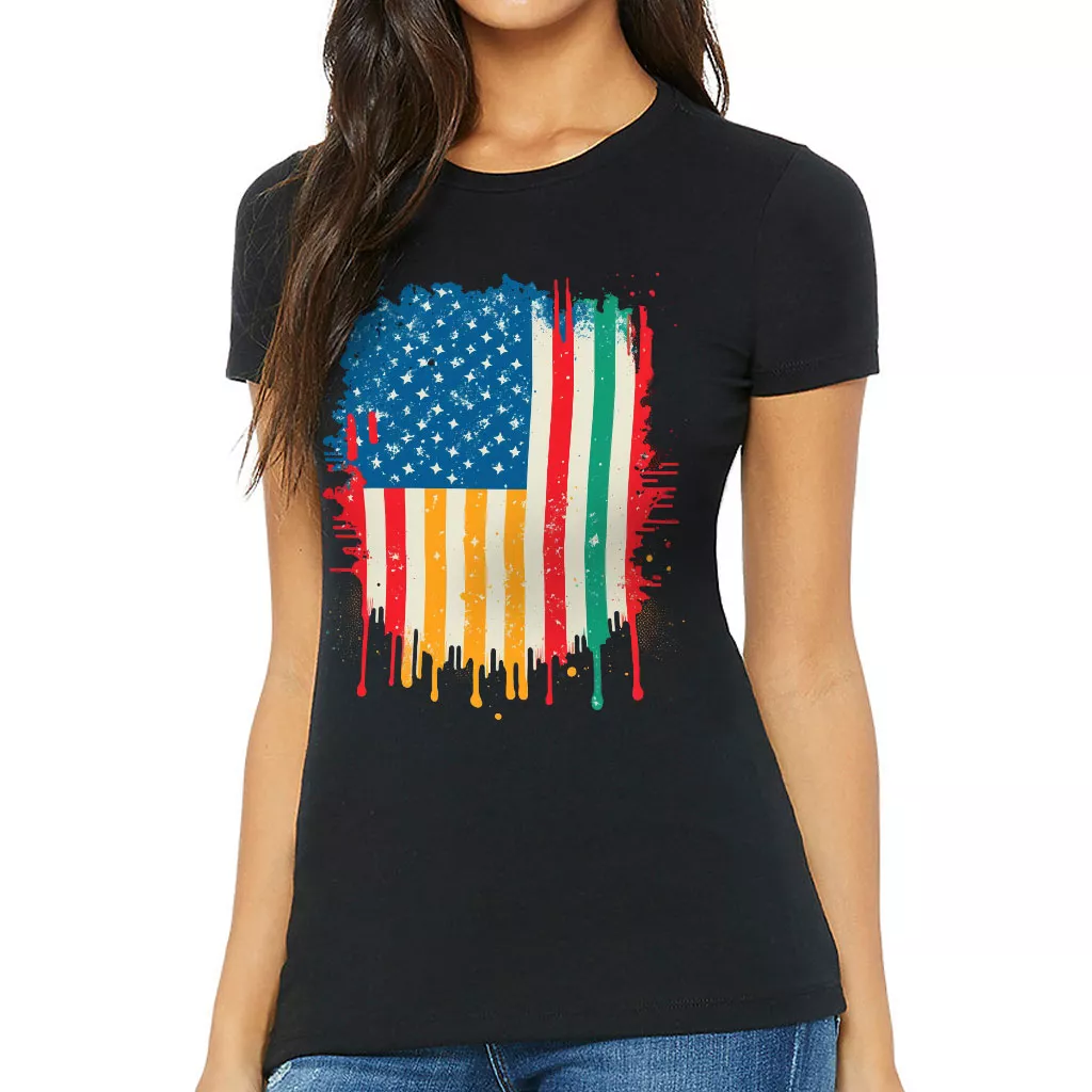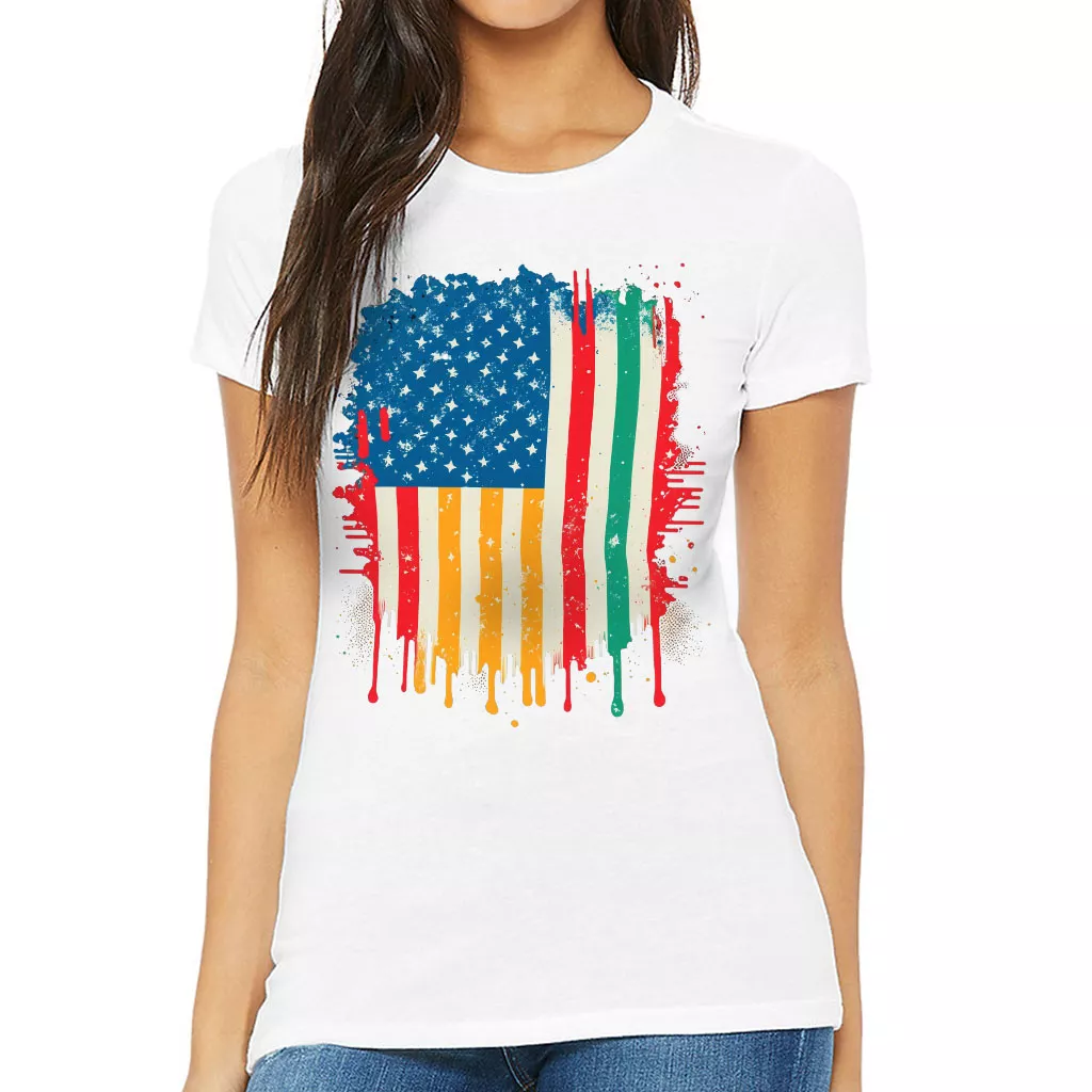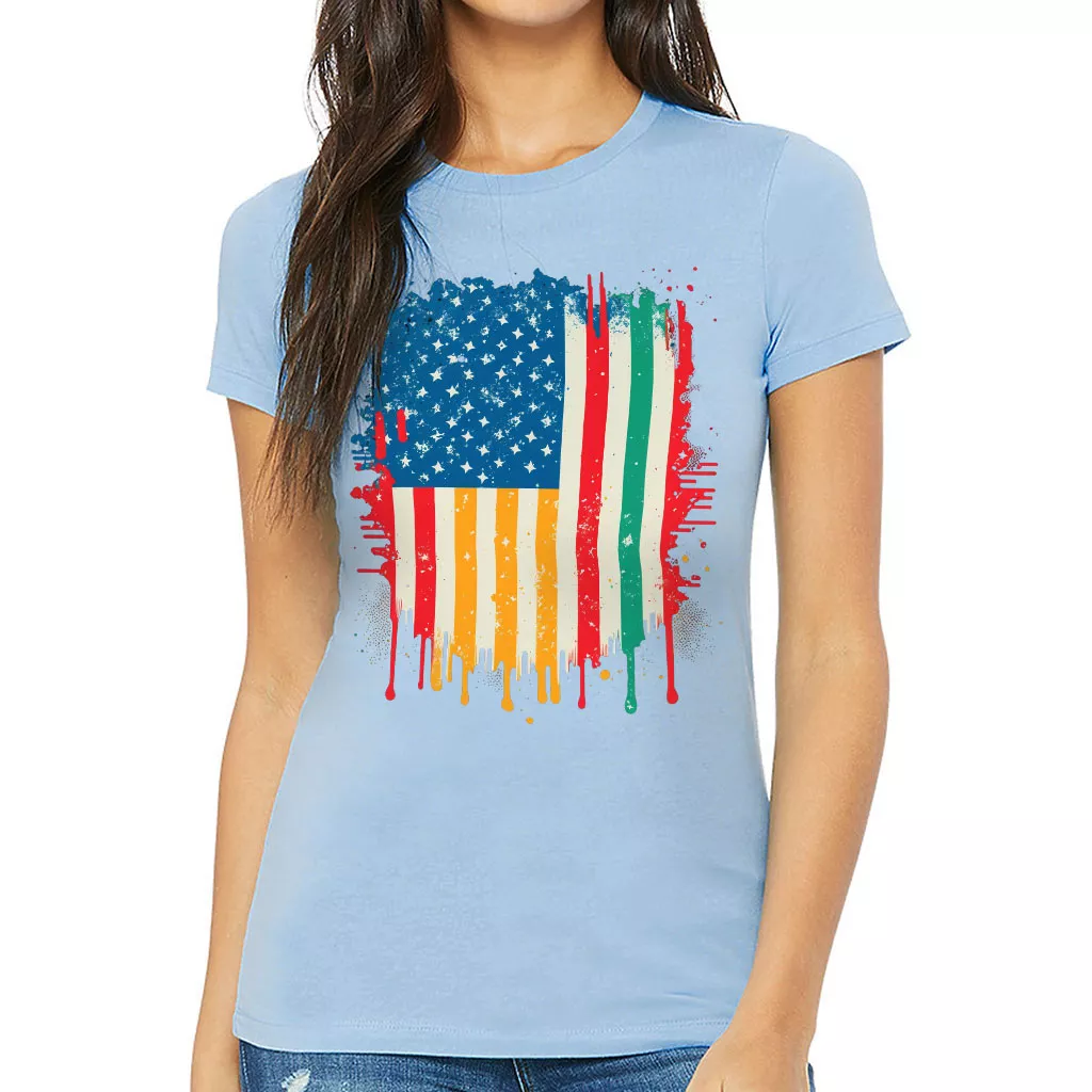 USA Flag Slim Fit T-Shirt – Creative Women’s T-Shirt – Patriotic Slim Fit Tee