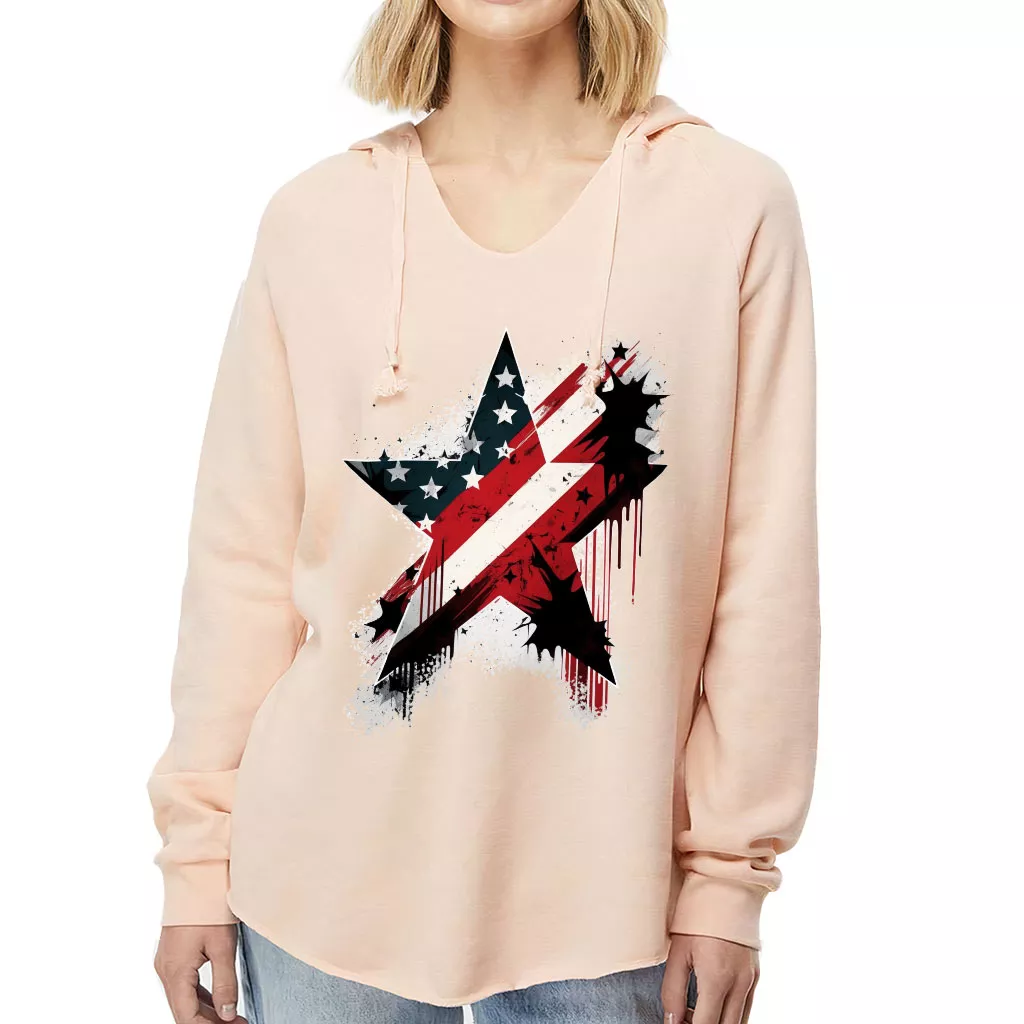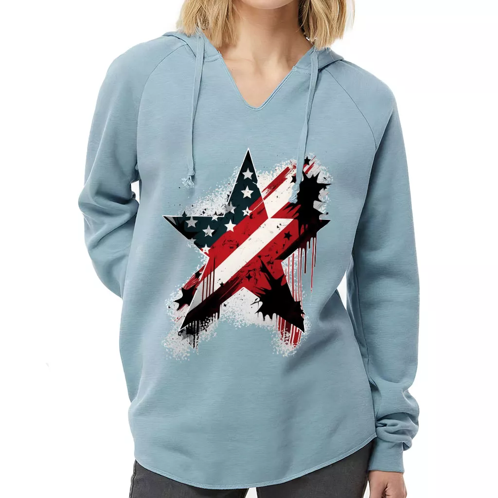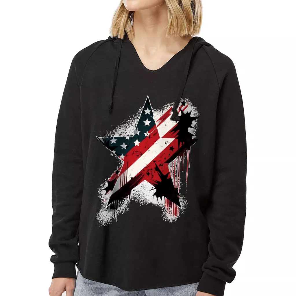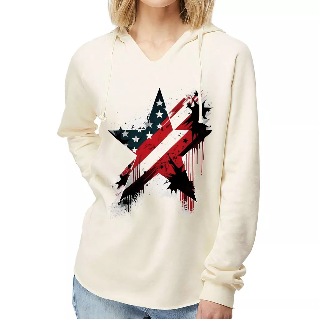 USA Flag Wave Wash Hoodie – Star Print Hooded Sweatshirt – Patriotic Hoodie