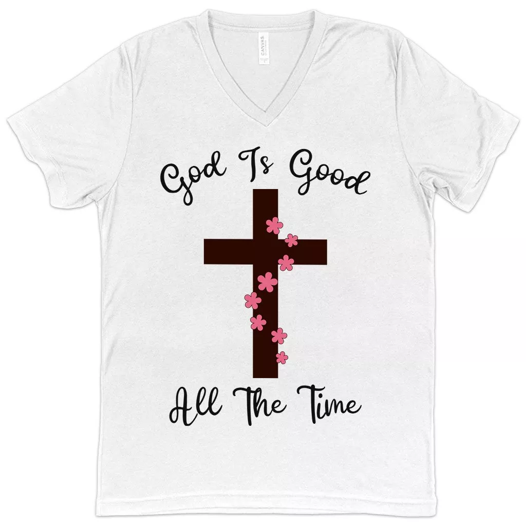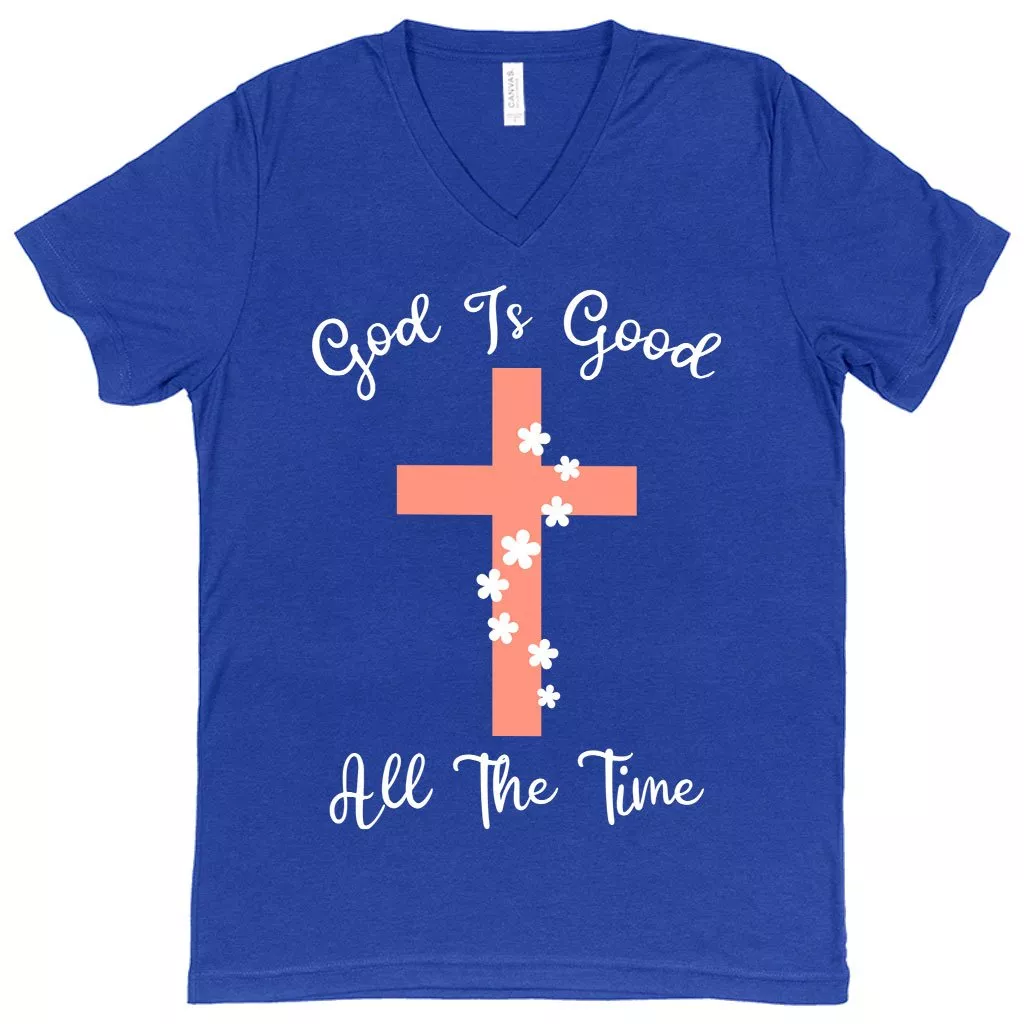 V-Neck God Is Good T-Shirt – Christian Message T-Shirts – Christian V-Neck T-Shirts