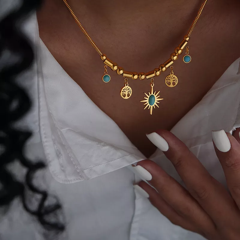 Transform your look with the ultimate vintage-inspired pendant necklace and bracelet set today. Order now and let your style shine!