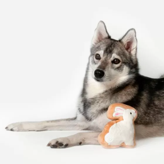 This Easter, treat your pup to a fluffy and sweet sugar cookie! Featuring a white rabbit design, the plush toy is designed to look like a bunny-shaped cookie.