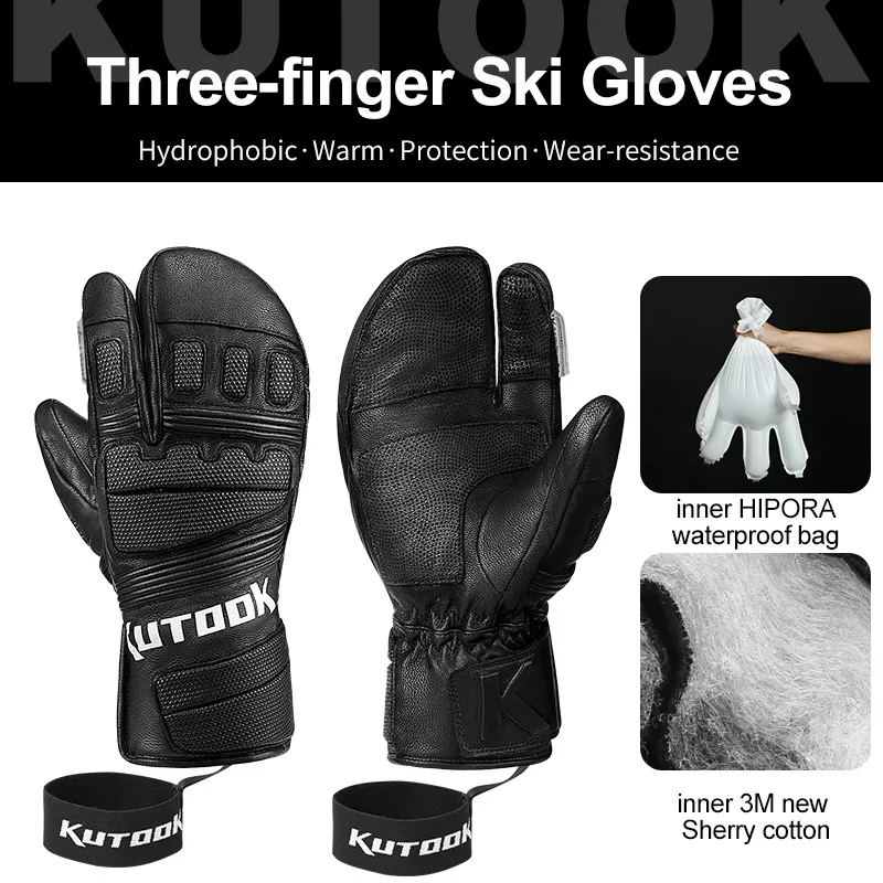 - Convenient Features: The gloves are equipped with a soft silicone scraper on the index finger for clearing snow, an adjustable wrist strap with a loop and hook system for a snug fit, and an anti-lost rope for easy attachment to your gear.