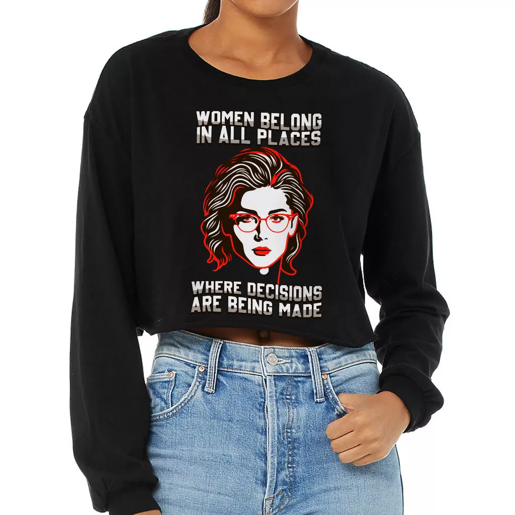 Women Belong in All Places Cropped Long Sleeve T-Shirt