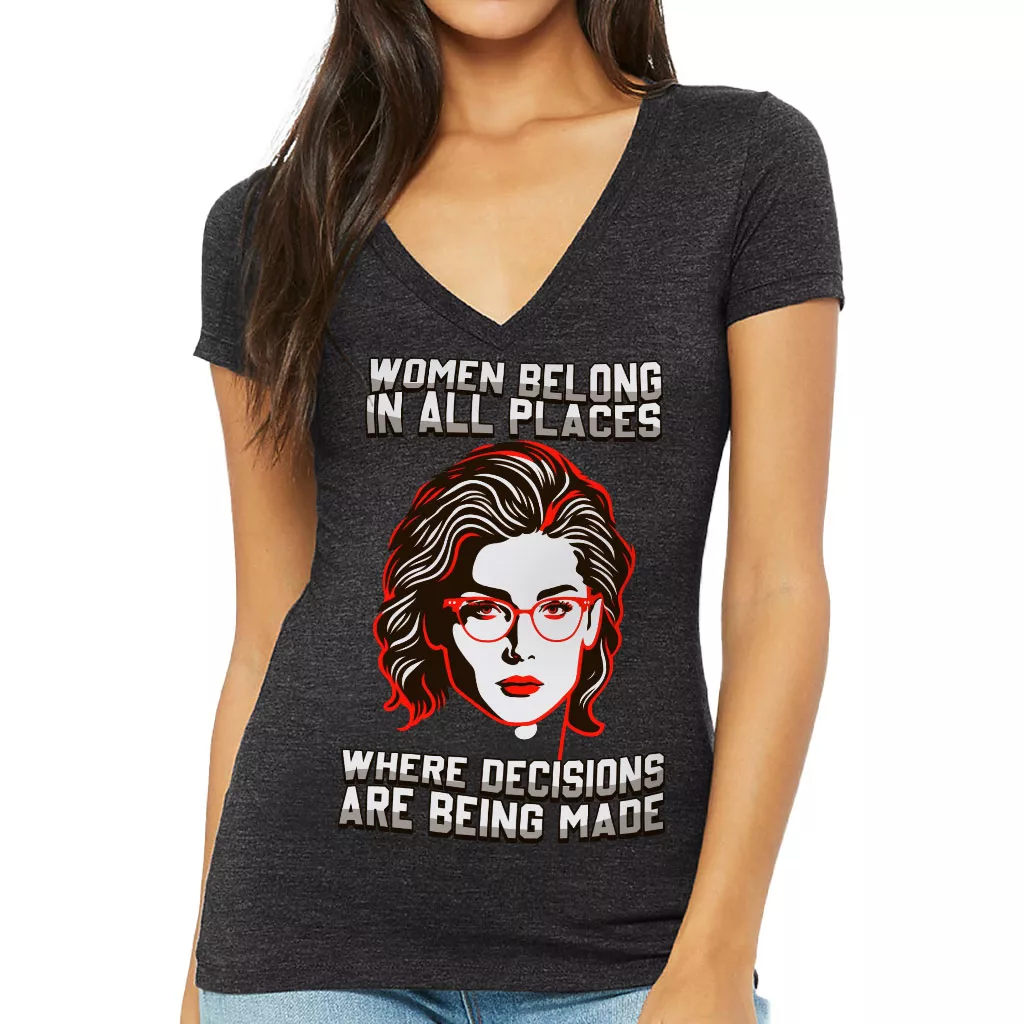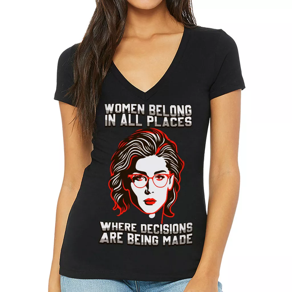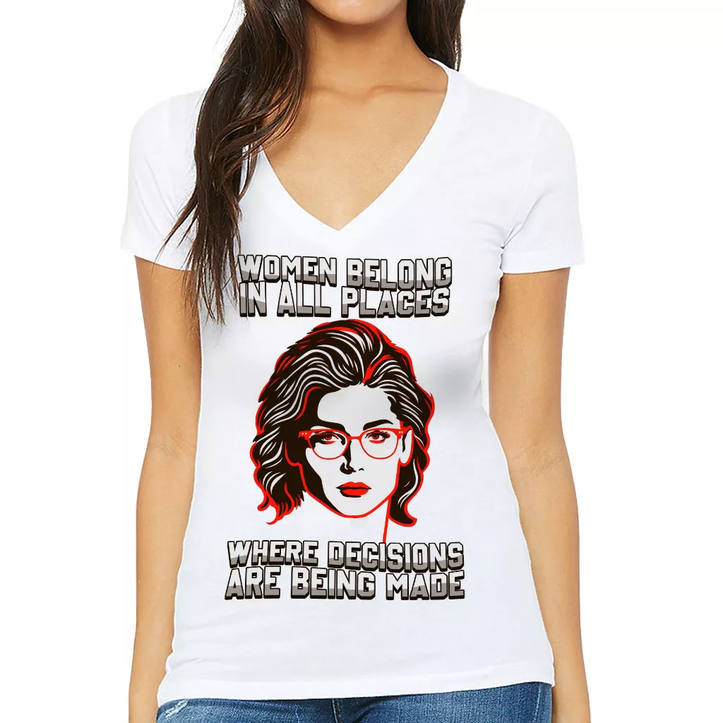 Women Belong in All Places Women’s V-Neck T-Shirt – Trendy V-Neck Tee – Feminist T-Shirt