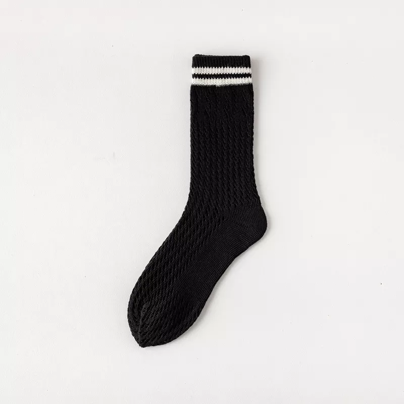 What sets these socks apart is their blend of fashion and functionality. The combed cotton provides a soft and breathable feel, making them comfortable for all-day wear. The addition of spandex ensures the socks have a bit of stretch, helping them retain their shape while fitting snugly around your feet and ankles. The classic black and white striped pattern is a timeless look that’s both modern and versatile, making these socks a stylish accessory that complements any outfit. Their short tube design adds a trendy touch, while still offering the practical benefits of comfortable, everyday wear.