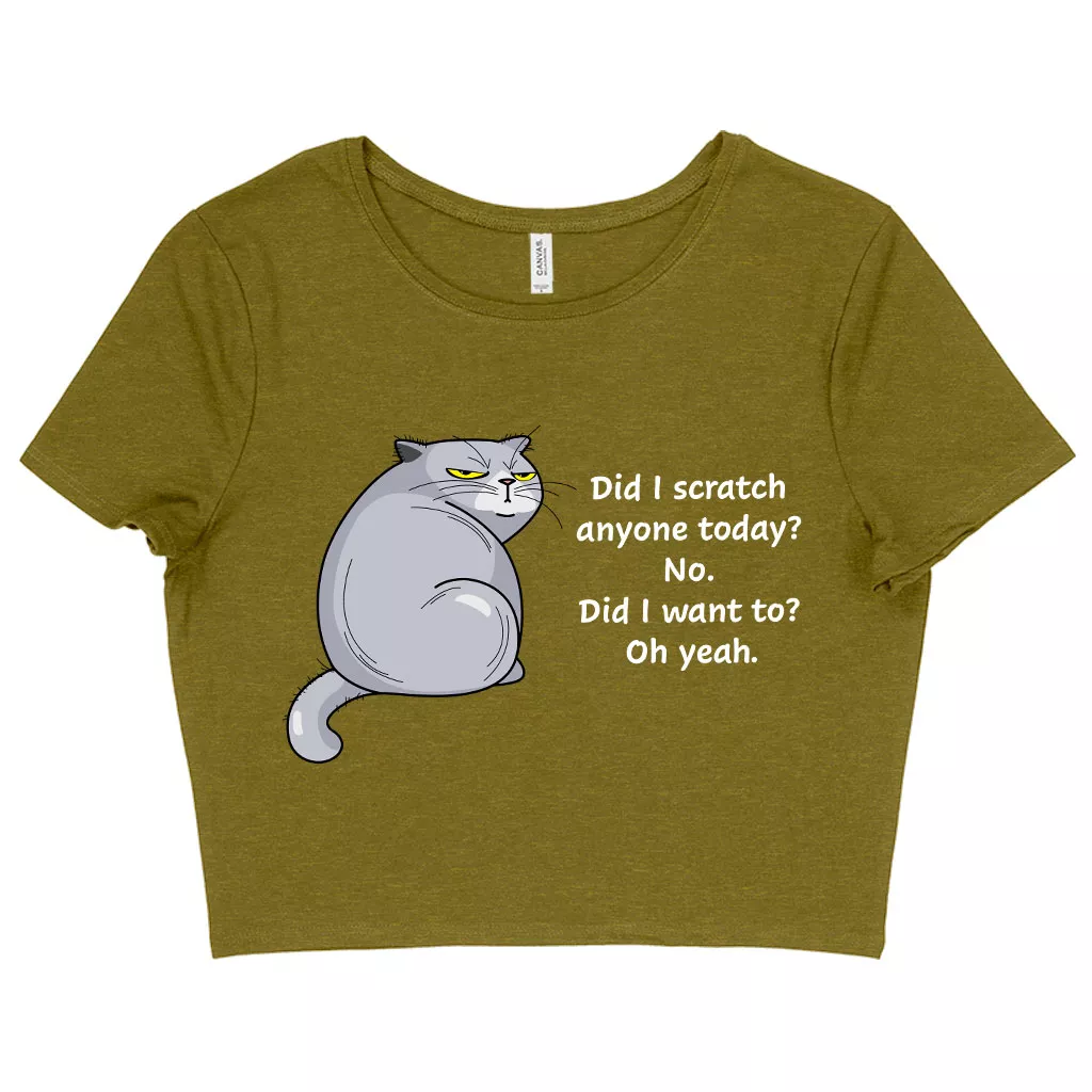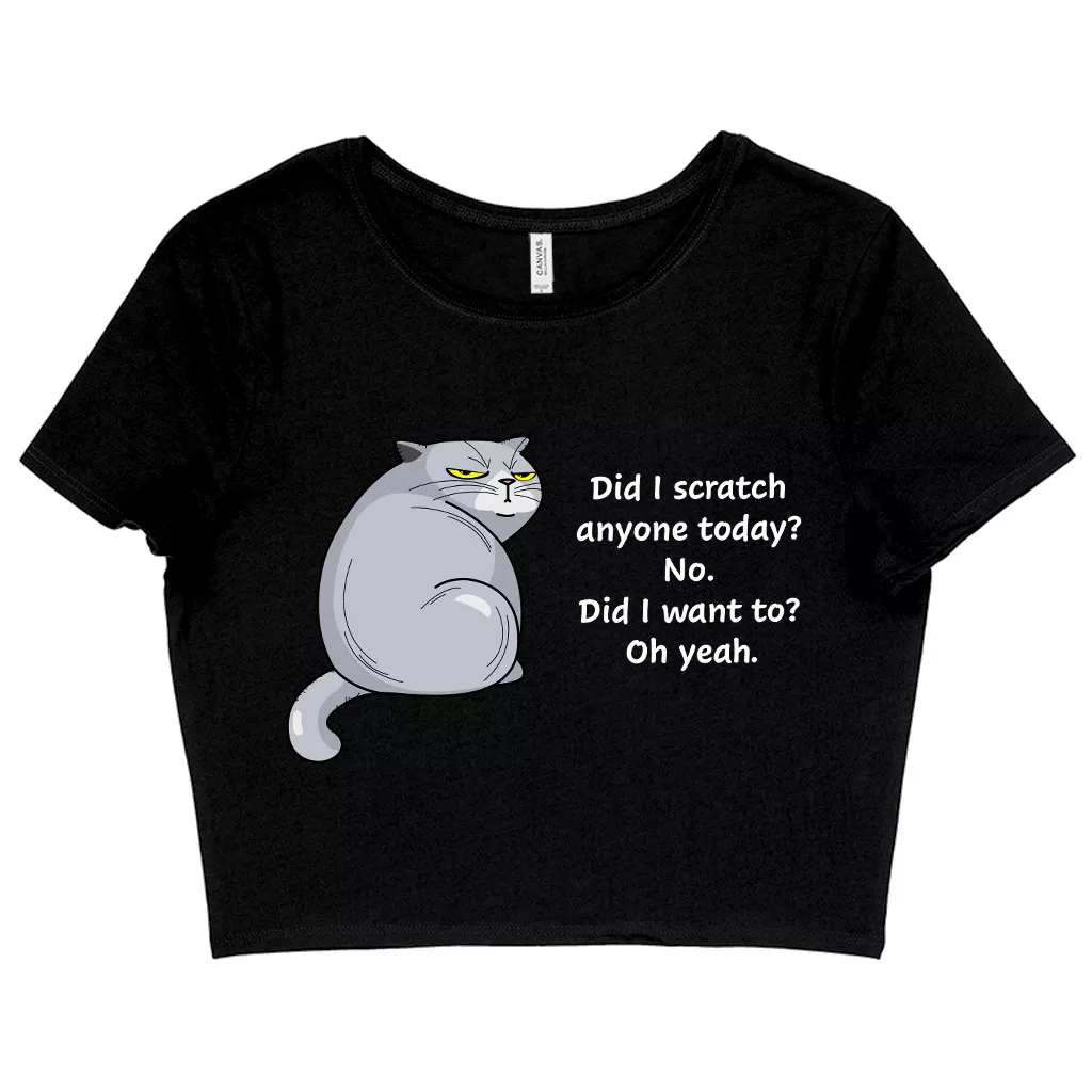 Women’s Cropped Did I Scratch Anyone Today Funny Cat T-Shirt – Crazy Cat Tee Shirt